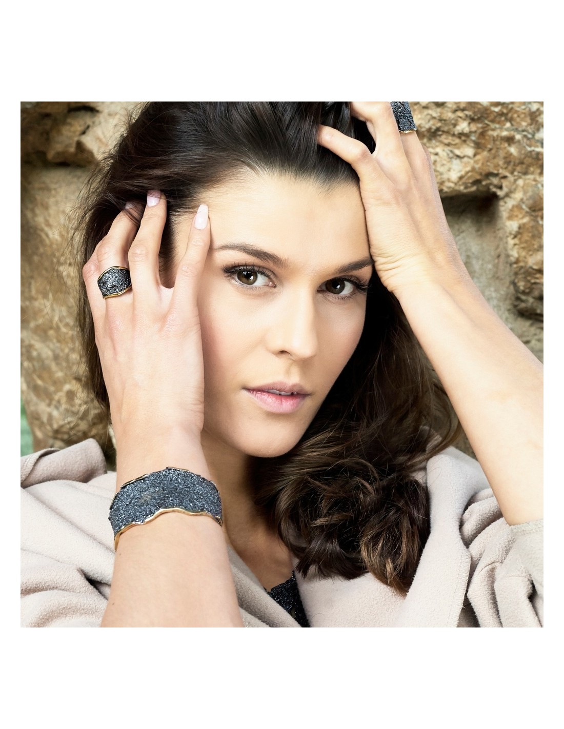 Jewelry bronze bracelet finished with an 18ct gold plating, black rhodium plating and a final nanoceramic coating process.