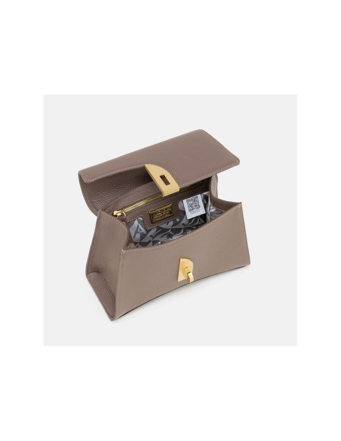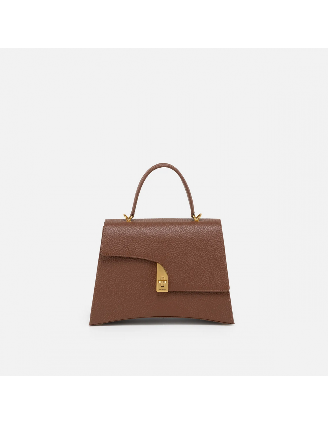 The Arcadia Arco is a large satchel with an unconventional design. Its sculptural silhouette and flexible geometry give it a bold and modern character.