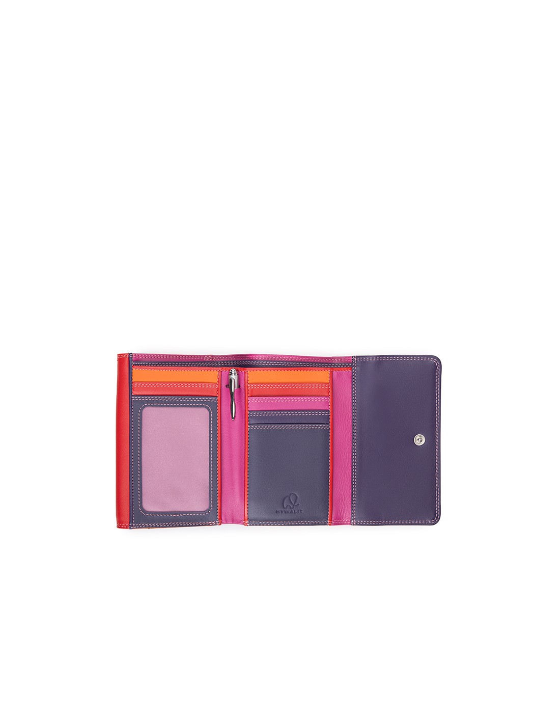 Our Double Flap Purse/Wallet shows off an original double strip of mywalit colour for a unique and fun accessory! Pop open the top colour to reveal a card and note section with a transparent window for ID and a handy mini pen. The second colour strip contains a deep pocket for loose change.