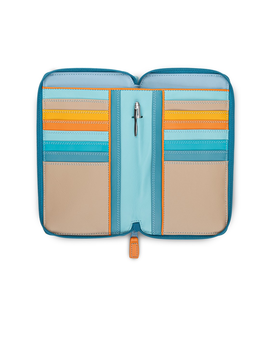 Compact yet spacious purse with room for a smartphone, 16 credit cards, cash and a secure zip pocket for coins. With RFID technology. The adjustable shoulder strap makes it perfect for shopping or travel, while a stylish silver mywalit pen adds the finishing touch!