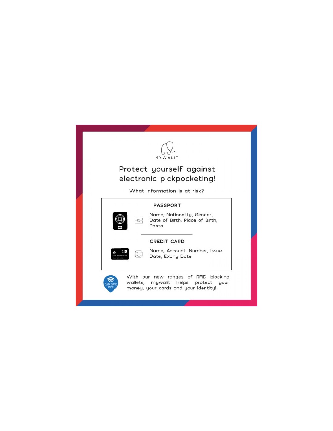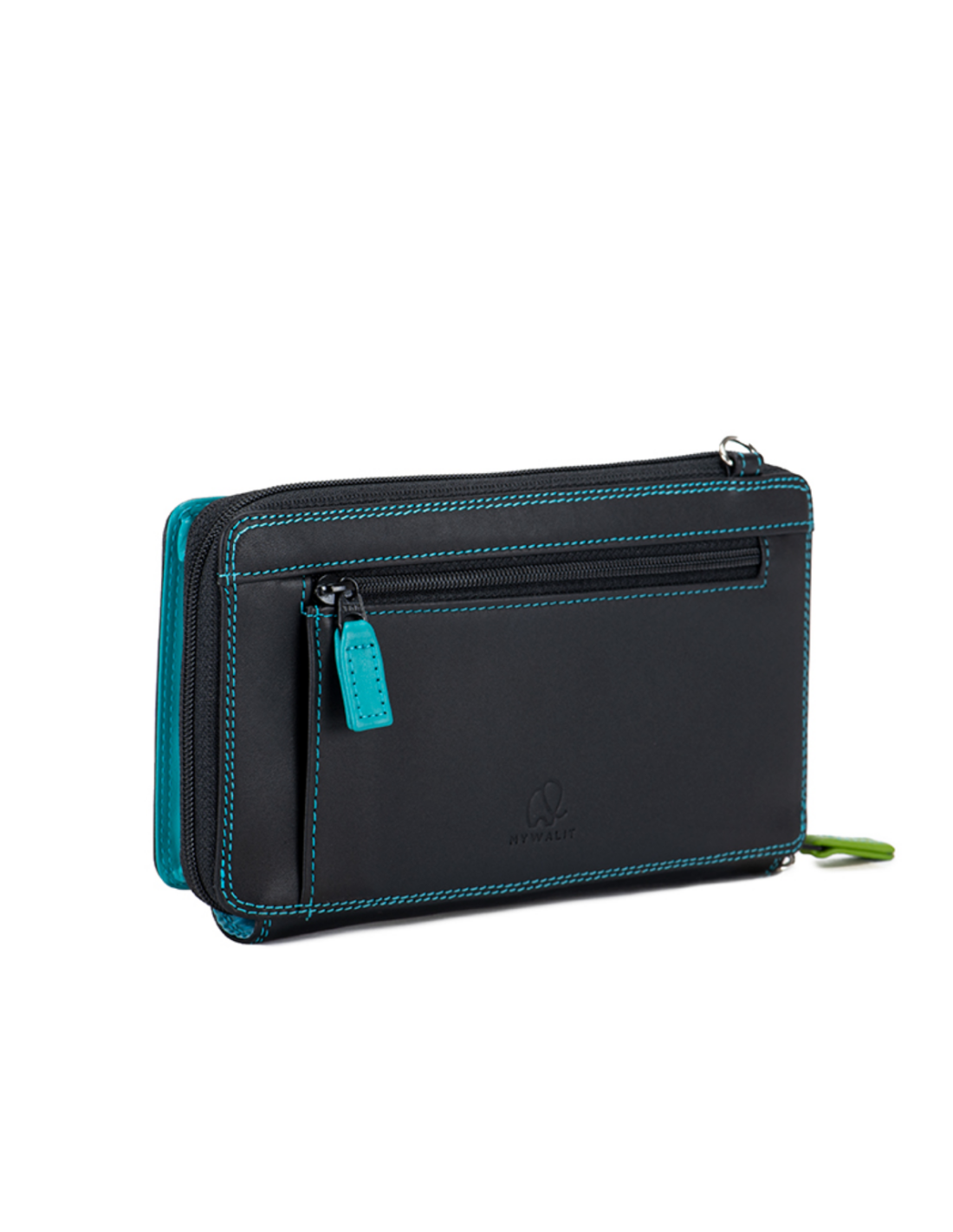 Compact yet spacious purse with room for a smartphone, 16 credit cards, cash and a secure zip pocket for coins. With RFID technology. The adjustable shoulder strap makes it perfect for shopping or travel, while a stylish silver mywalit pen adds the finishing touch!