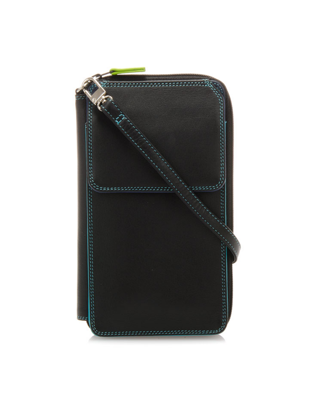 Zip Round Multi Purse with Shoulder Strap Black Pace