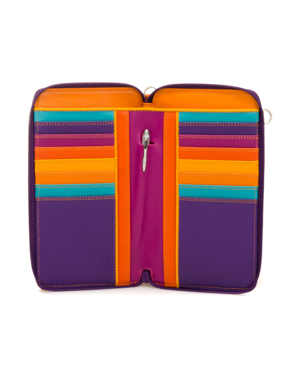 Compact yet spacious purse with room for a smartphone, 16 credit cards, cash and a secure zip pocket for coins. With RFID technology. The adjustable shoulder strap makes it perfect for shopping or travel, while a stylish silver mywalit pen adds the finishing touch!