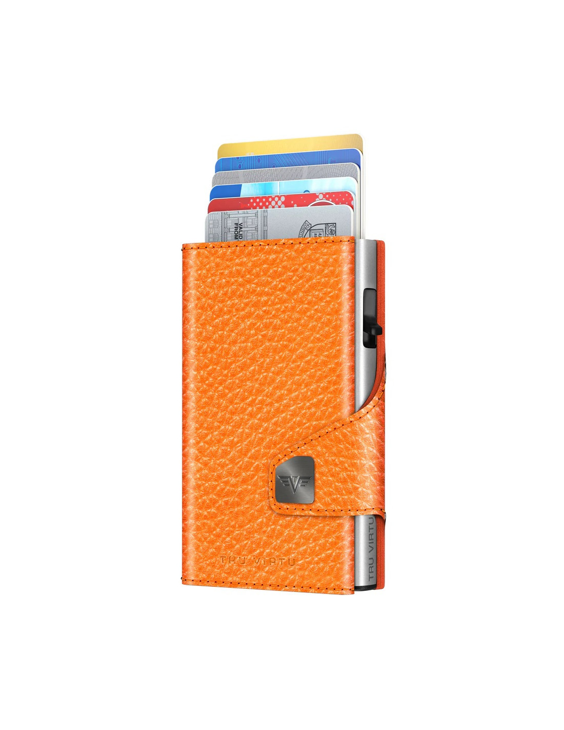 TRU VIRTU® "CLICK & SLIDE" wallet with vegan apple leather. This sustainable material is made from the waste of the juicing industry and transformed into a new form of vegan leather. This saves resources, reduces the use of chemical products, lowers emissions and saves energy. This product represents a contribution on our way to more sustainability.