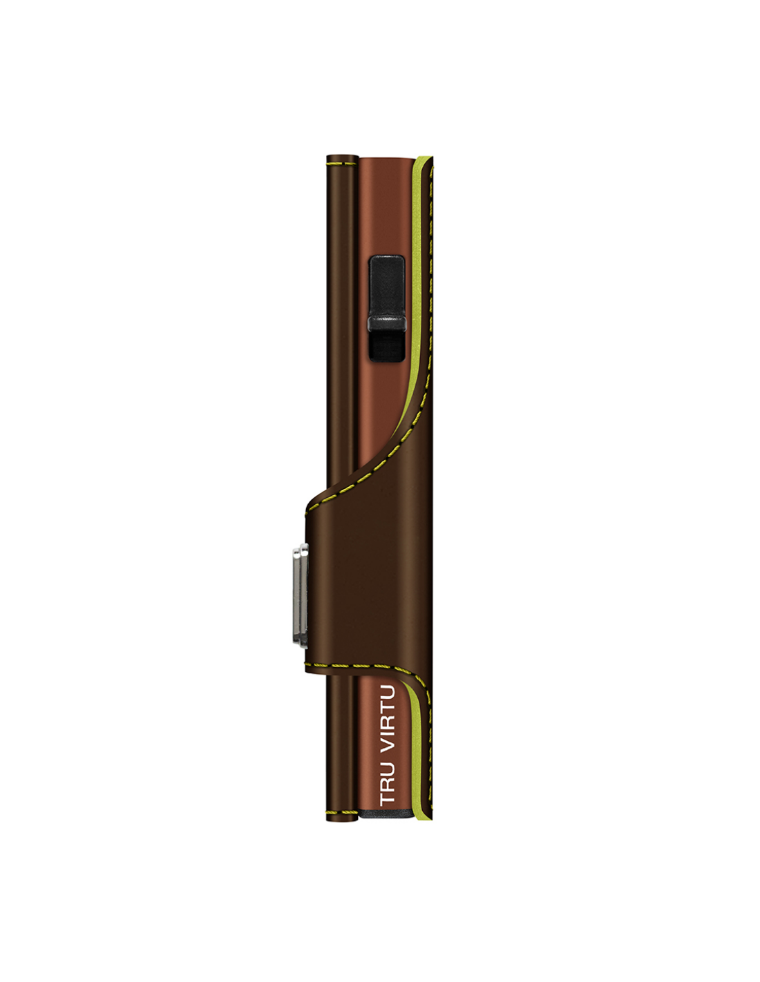 TRU VIRTU® "CLICK & SLIDE" wallet with vegan apple leather. This sustainable material is made from the waste of the juicing industry and transformed into a new form of vegan leather. This saves resources, reduces the use of chemical products, lowers emissions and saves energy. This product represents a contribution on our way to more sustainability.