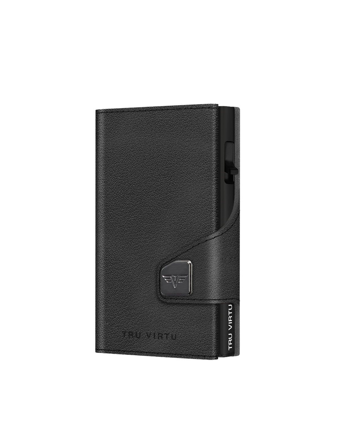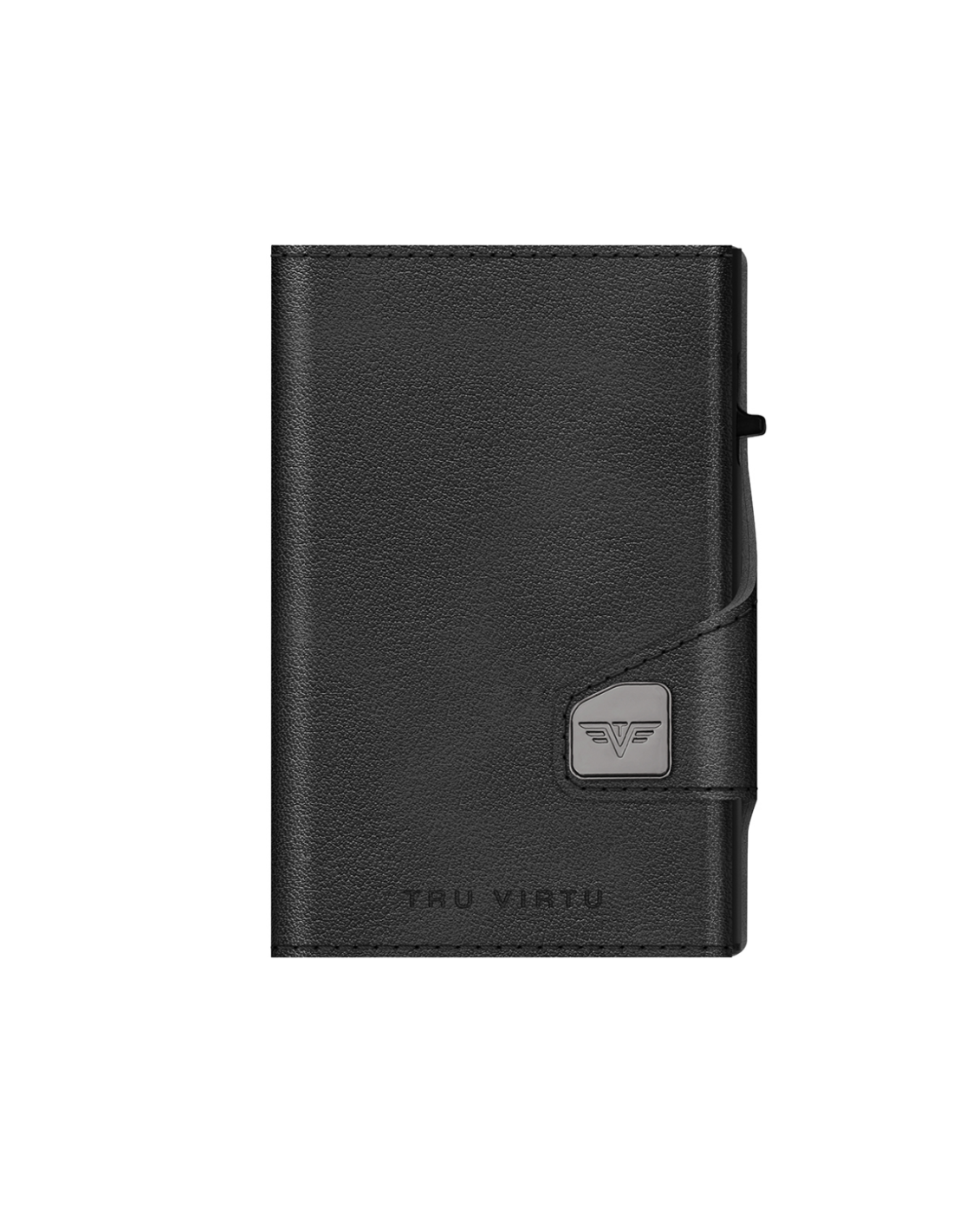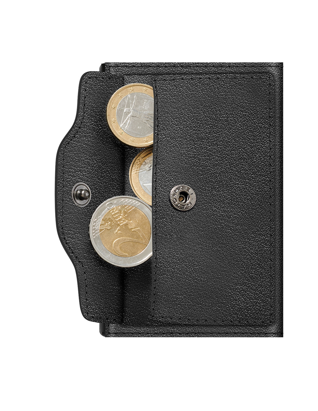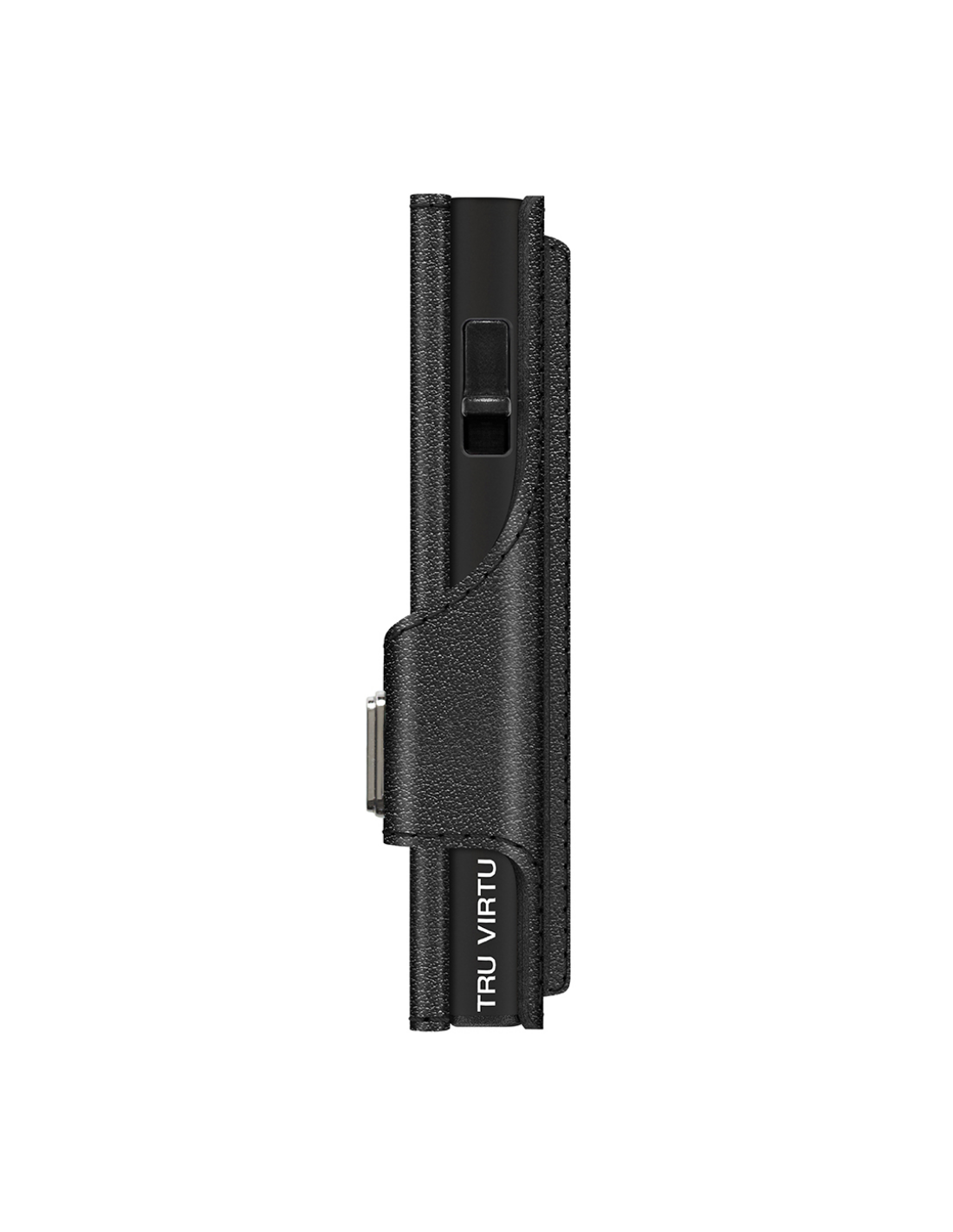 The TRU VIRTU® "CLICK & SLIDE" wallet is not much bigger than a credit card. With a touch of a finger and without opening it, a maximum of 5 cards (mix of max. 4 embossed and 1 flat cards) slide out automatically in staggered form. Thanks of the clever "One-Touch" technology, the "CLICK & SLIDE" is very easy to use with just one hand. The inner aluminium case protects your cards against illegal data theft of NFC/RFID chips and demagnetization. The leather-envelope made of the finest Italian leather offers additional space for extra cards, business cards and banknotes and has the additional advantage that "Tap & Go" cards can be used conveniently. The new „coin pocket“ Wallet offers all advantages of a “Click&Slide” and additionally it provides space for coins. Made in Germany.