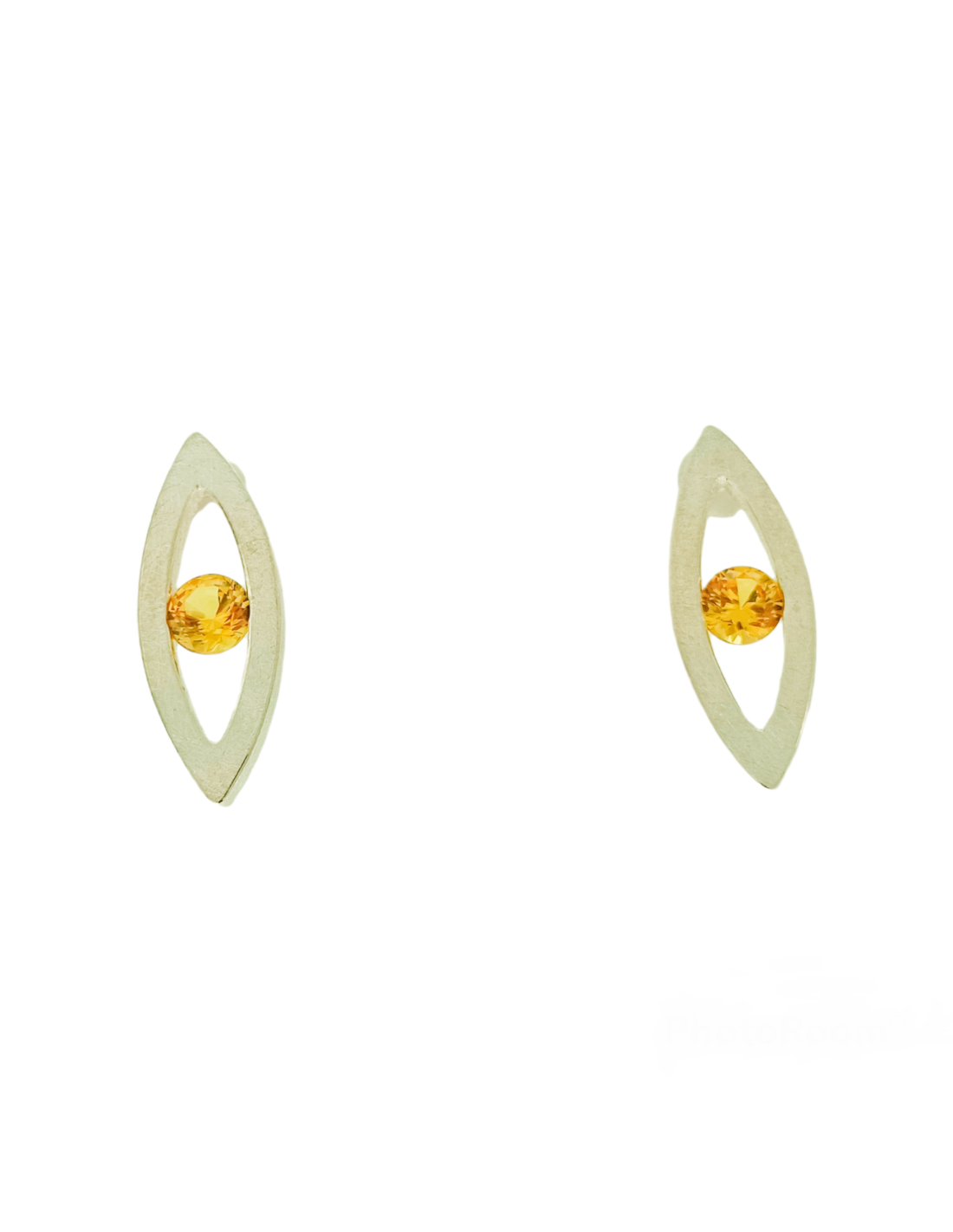 Earrings in striped lei silver with citrin spinella set in tension. Pressure close.