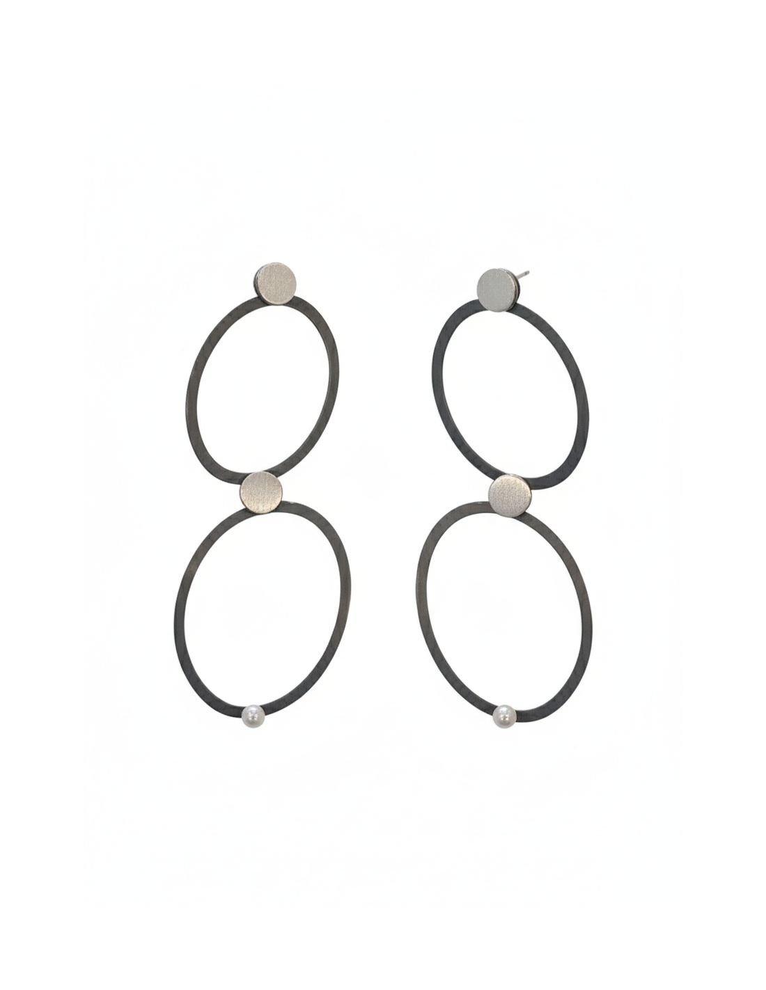 Earrings in oxidized and matte 925 silver with akoya pearl detail