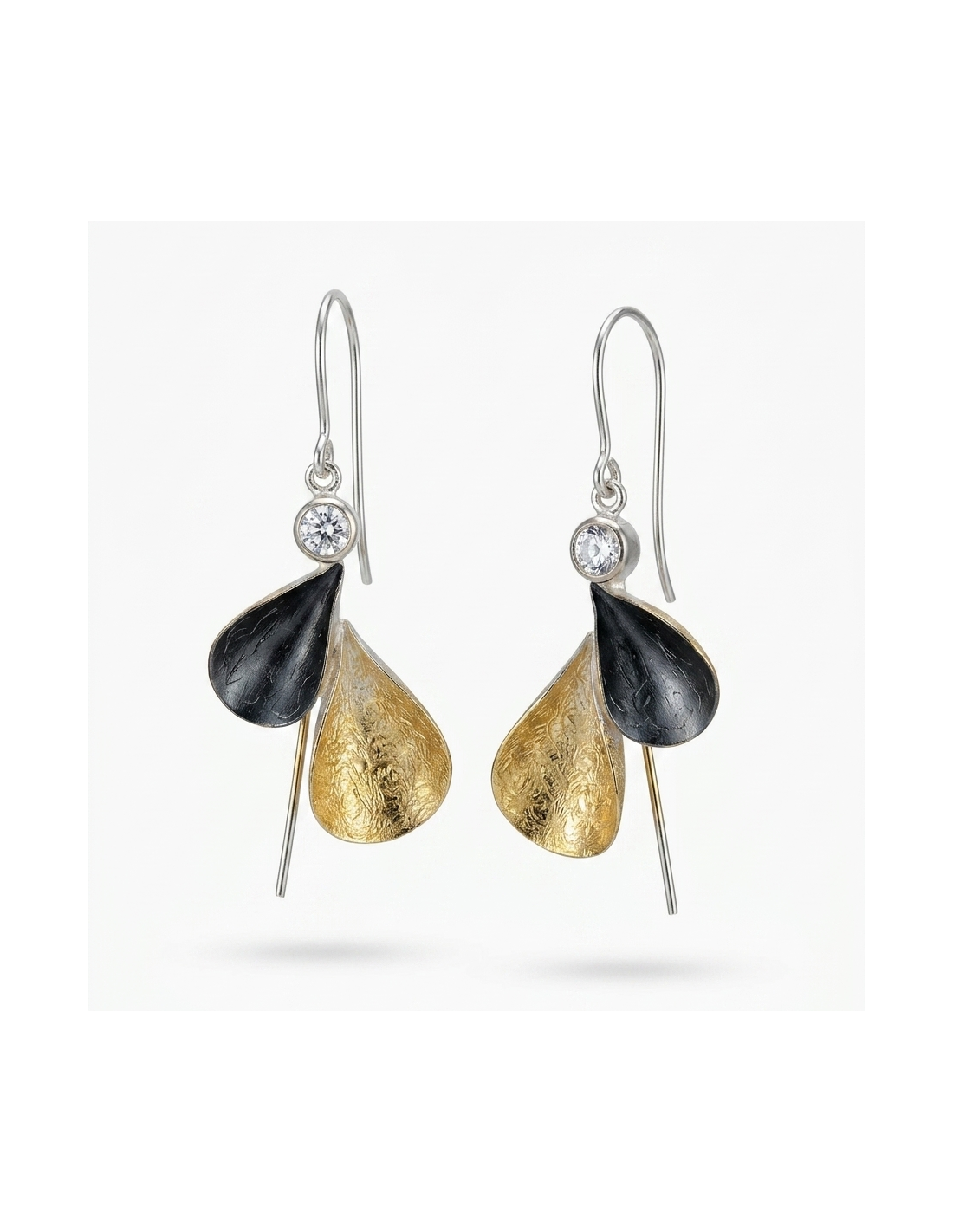 Golden Eclipse earrings feature an organic design with contrasting black and gold, enhanced with subtle sparkle. A sophisticated piece that adds light and personality to any look. Made to stand out.