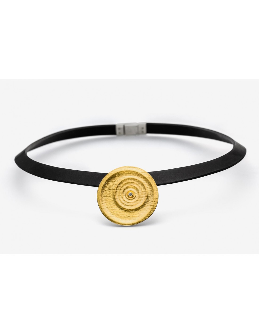 Necklace Silver, 22 kt gold and diamond 0,03 carats with rubber chain