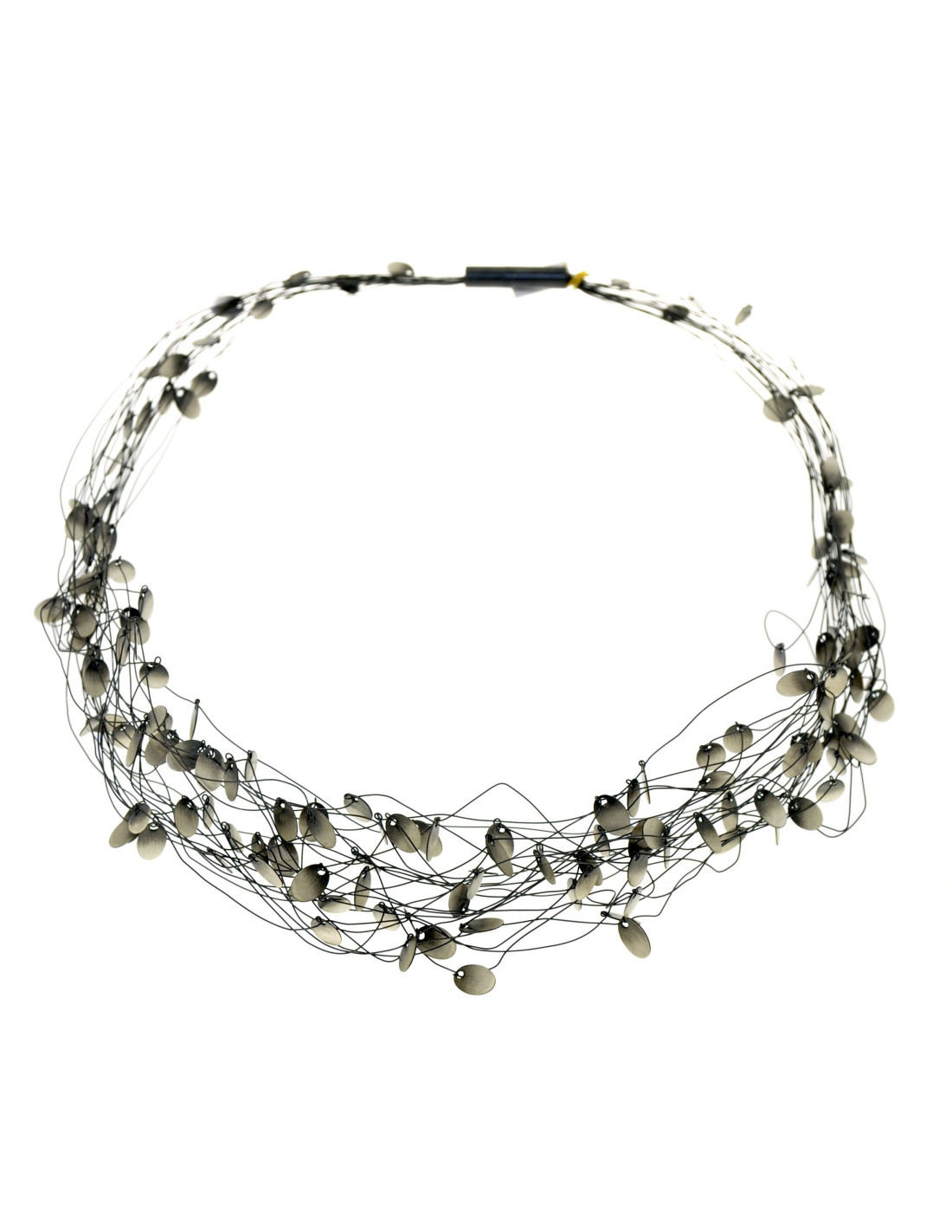 Necklace in 925 silver with threads and oval pieces skated.