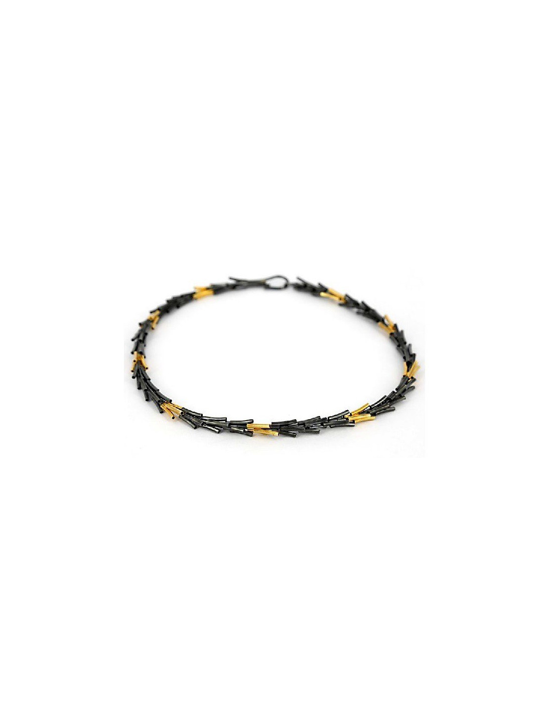 Necklace in 925 silver patinated with pieces with bathroom in 22 carat gold.