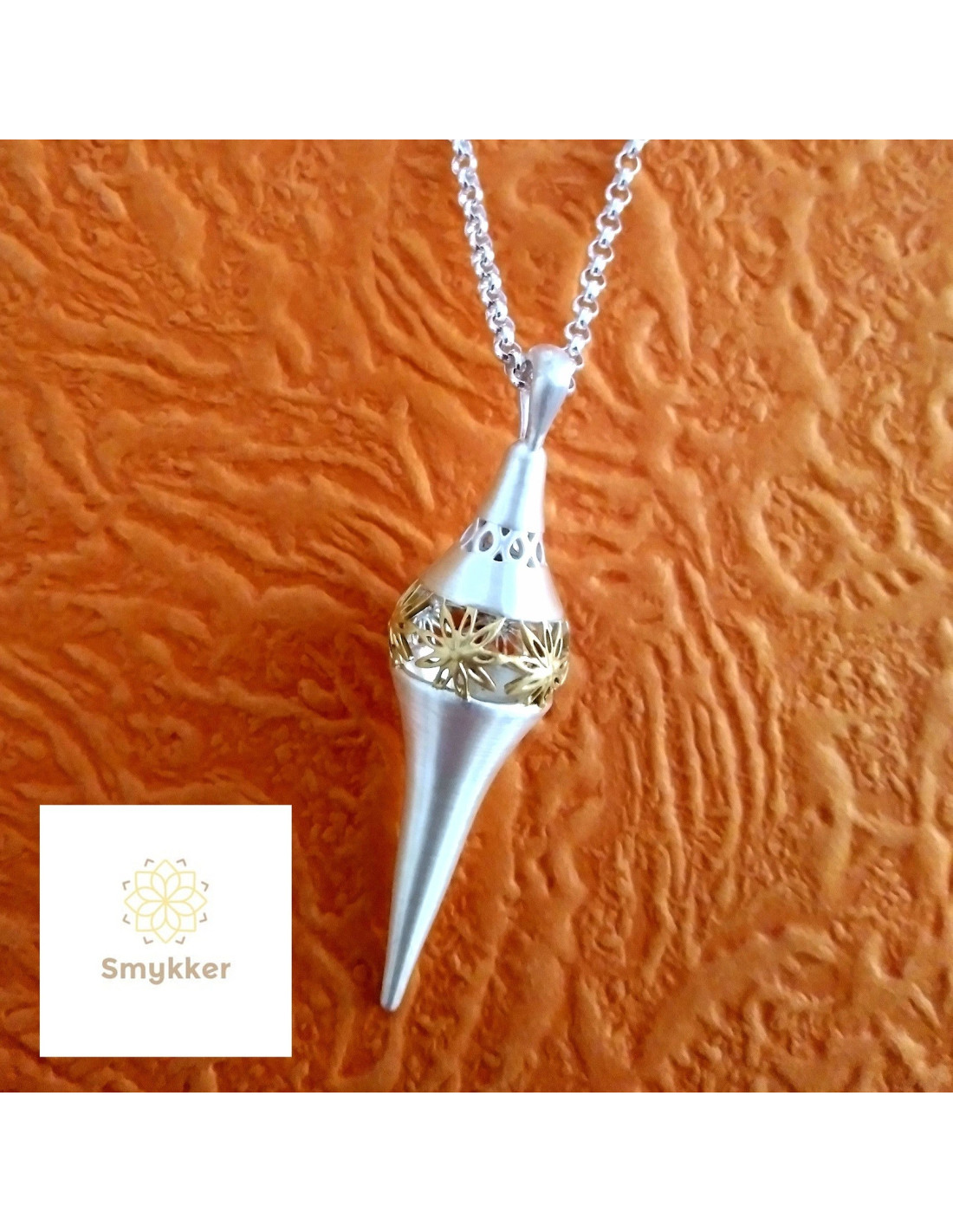 Bicolor 925 silver pendant, fine nuanced finish with 18 karat yellow gold bath.