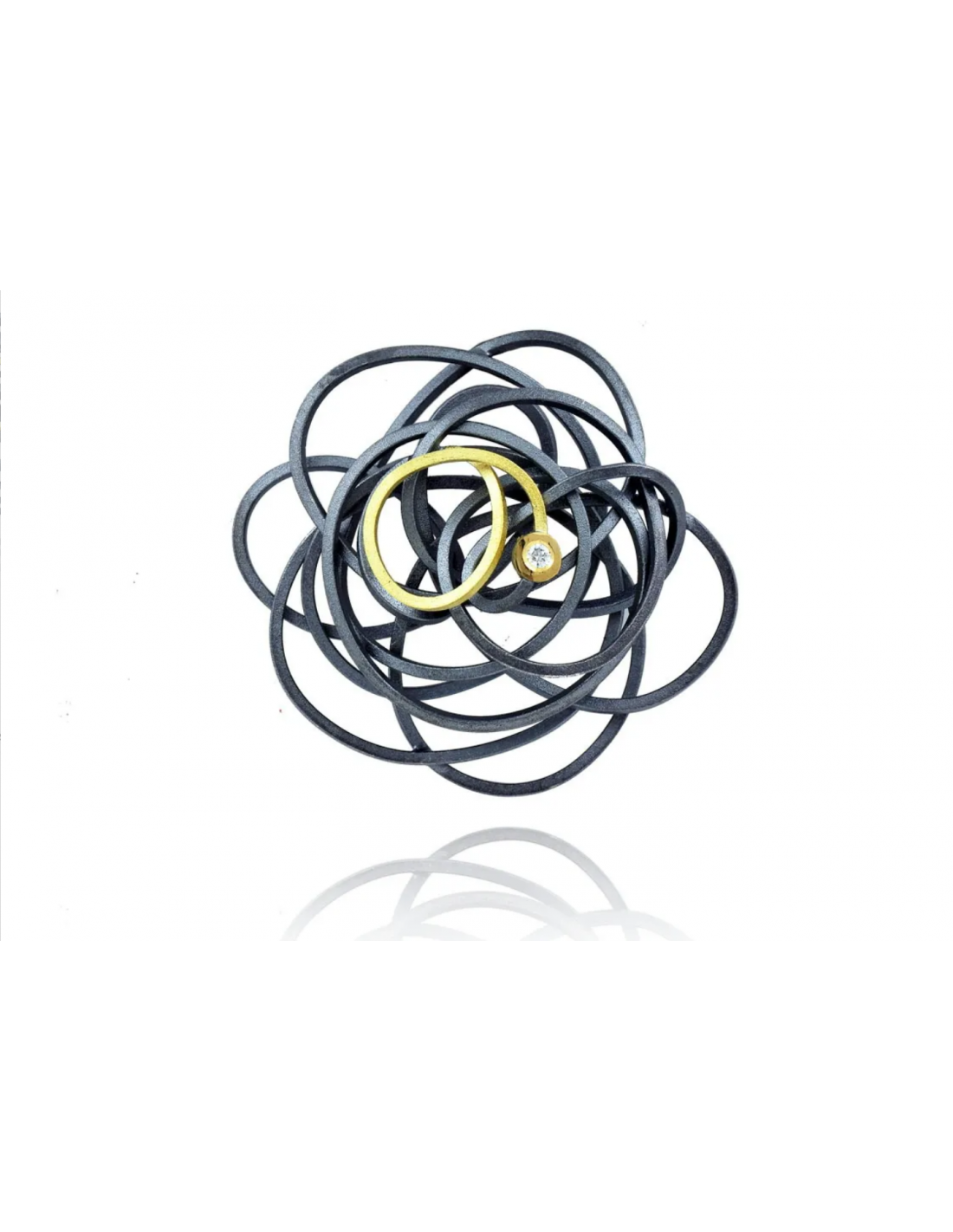 Small Chaos pendant, silver and gold with gold thread and diamond