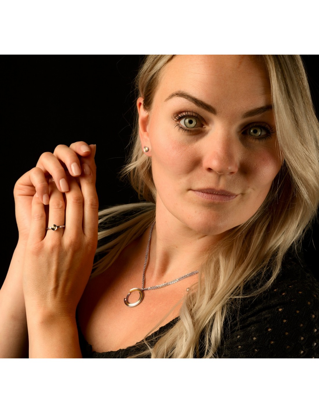 Circular earrings in matte steel and 18-karat yellow gold-plated center with 0.02 ct TW-VS (G) diamonds