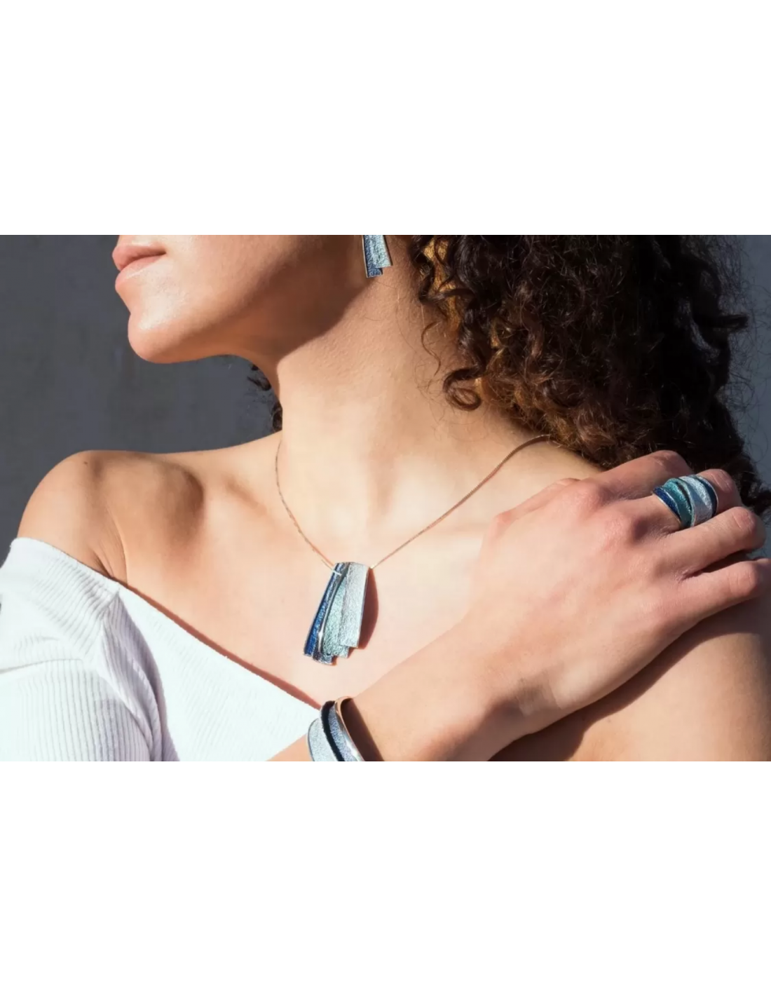 Pendant from the Troia collection made of 925 sterling silver in blue-toned enamel colors.