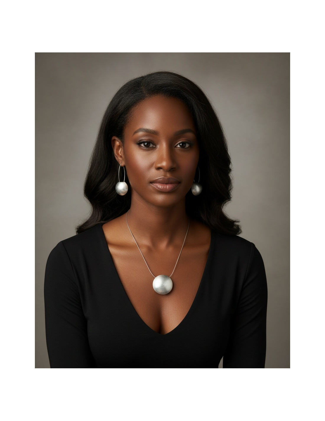 Domed pendant in matte 925 sterling silver with a striped finish