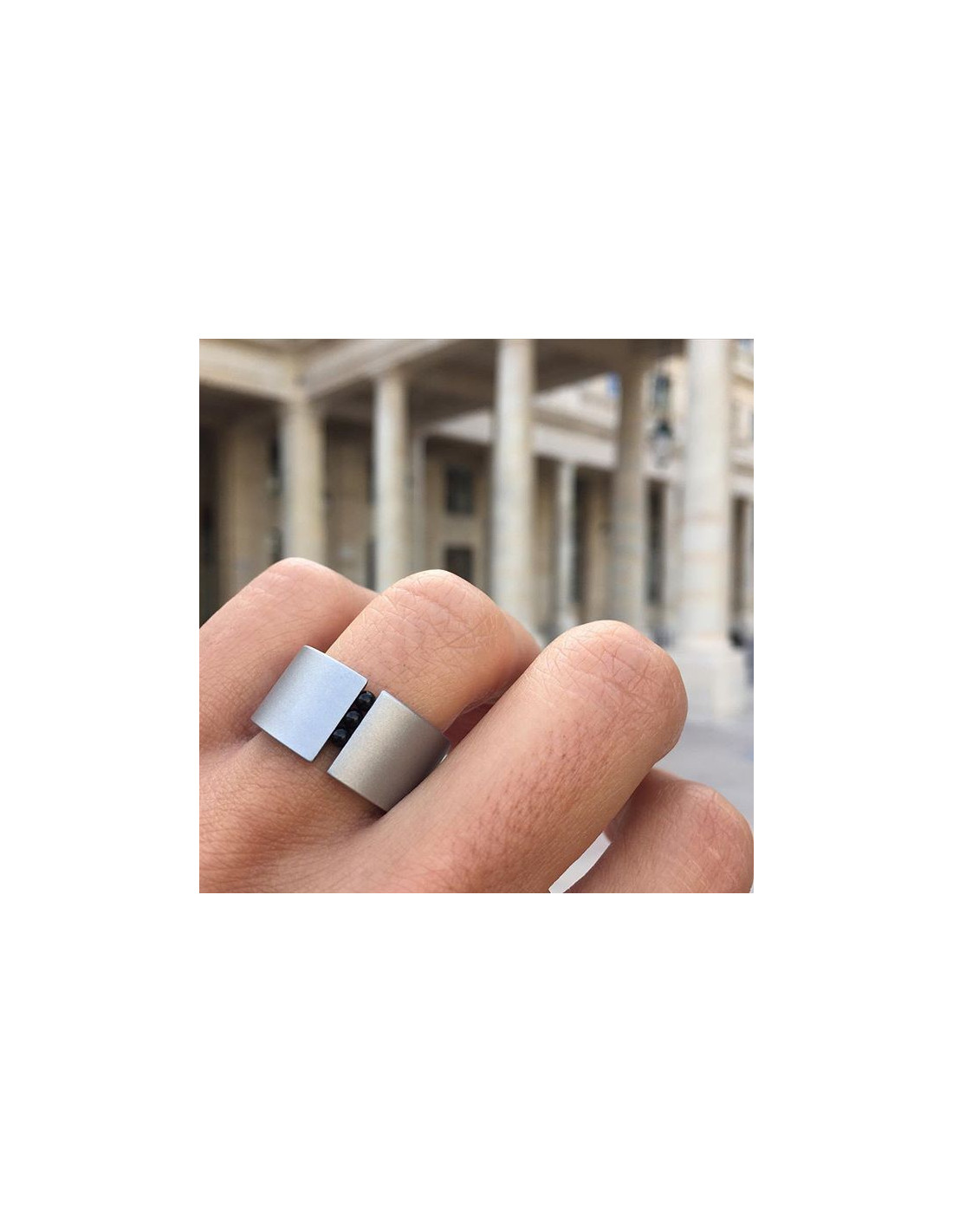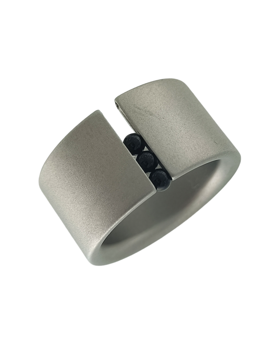 Gray steel ring Niessing with 3 balls onix moving.