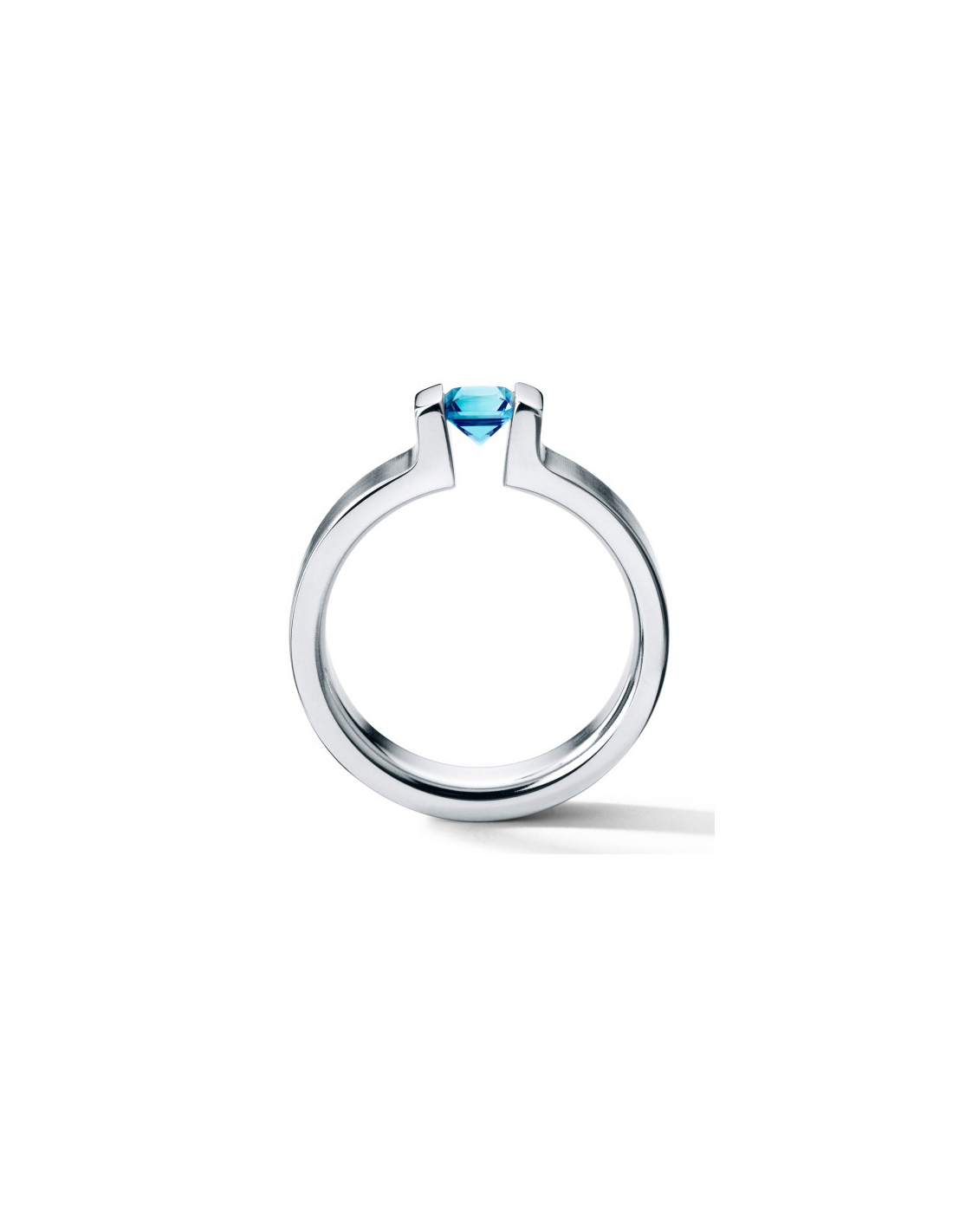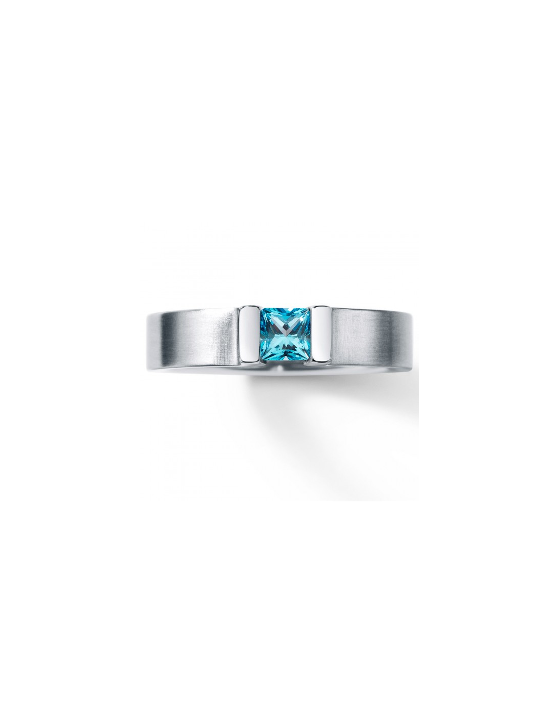 Steel ring Victory 4.5m.m. with princess cut blue topas stone.