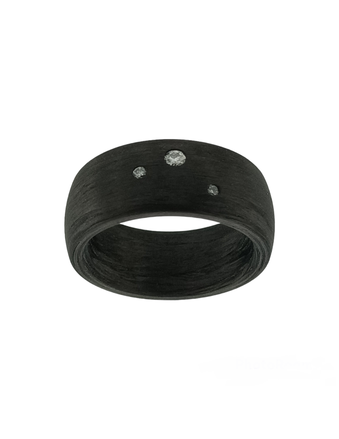 Carbon ring 8 m.m with 3 diamond 0.08 ct TW / VSI.