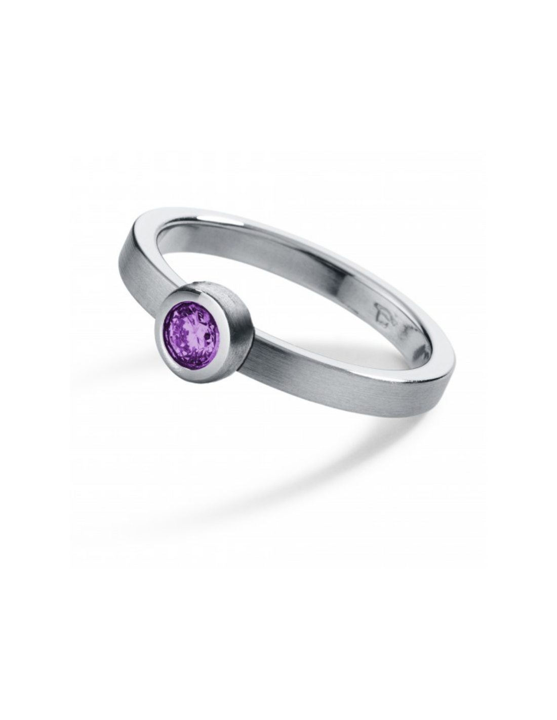 Ring 2.5 m.m wide steel with natural amethyst stone 3 m.m