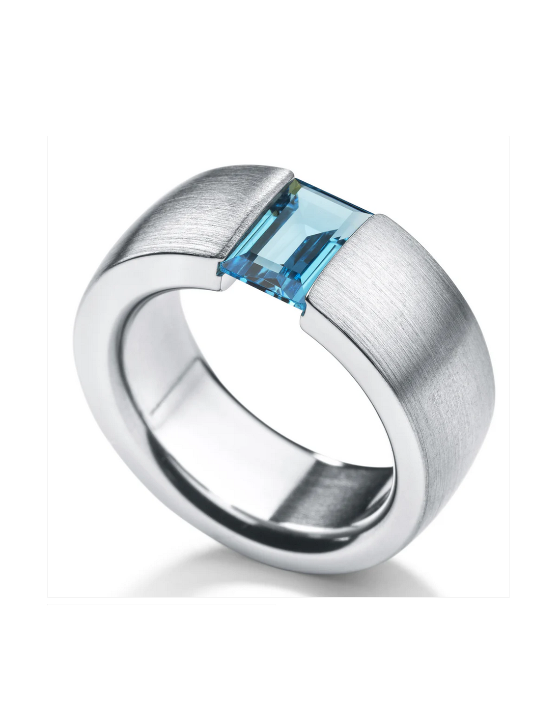 Steel ring 9 mm wide with colored stones, Topaz Swiss baguette cut 9x6 mm