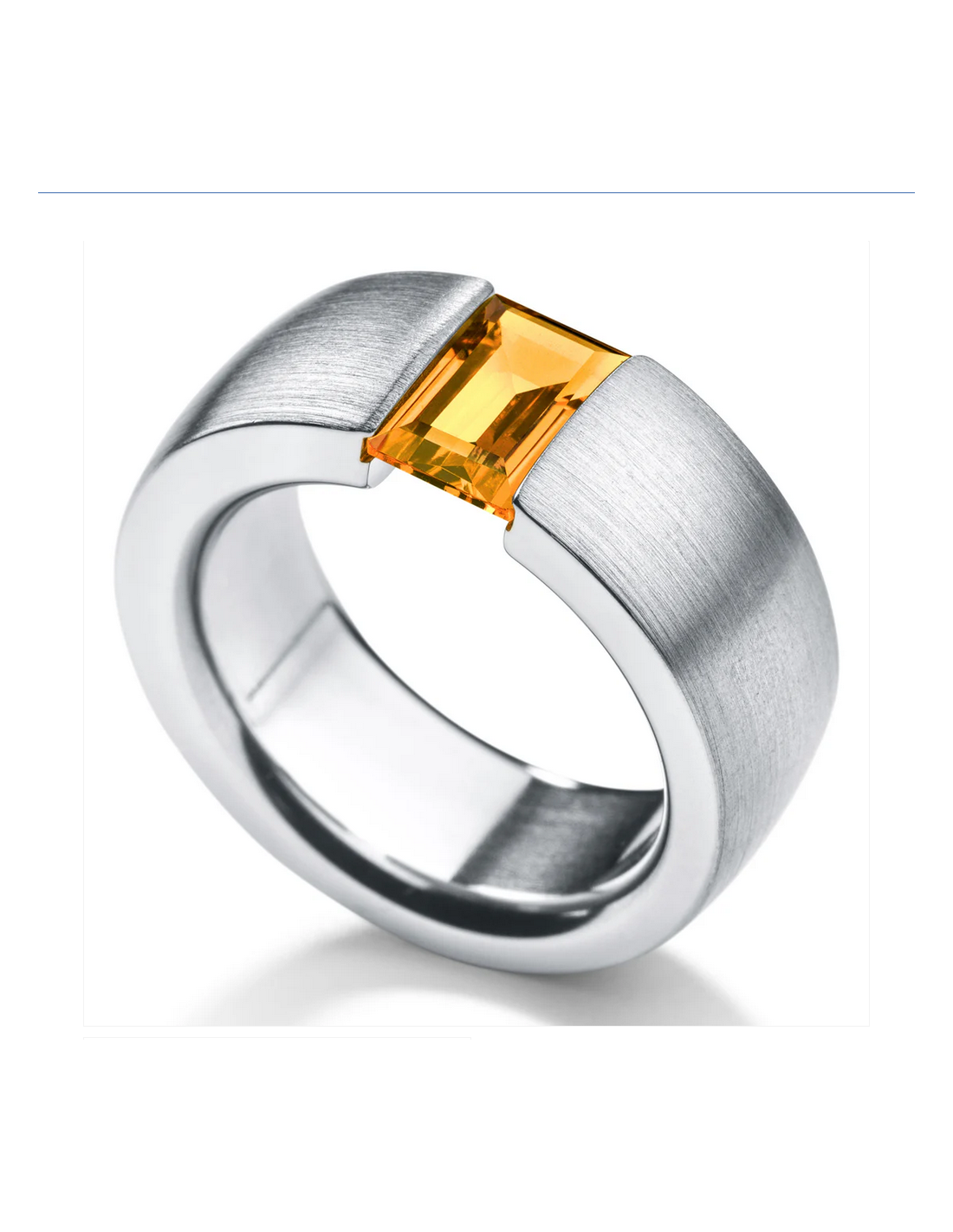 Steel ring 9 mm wide with colored stones, Citrine baguette cut 9x6 mm