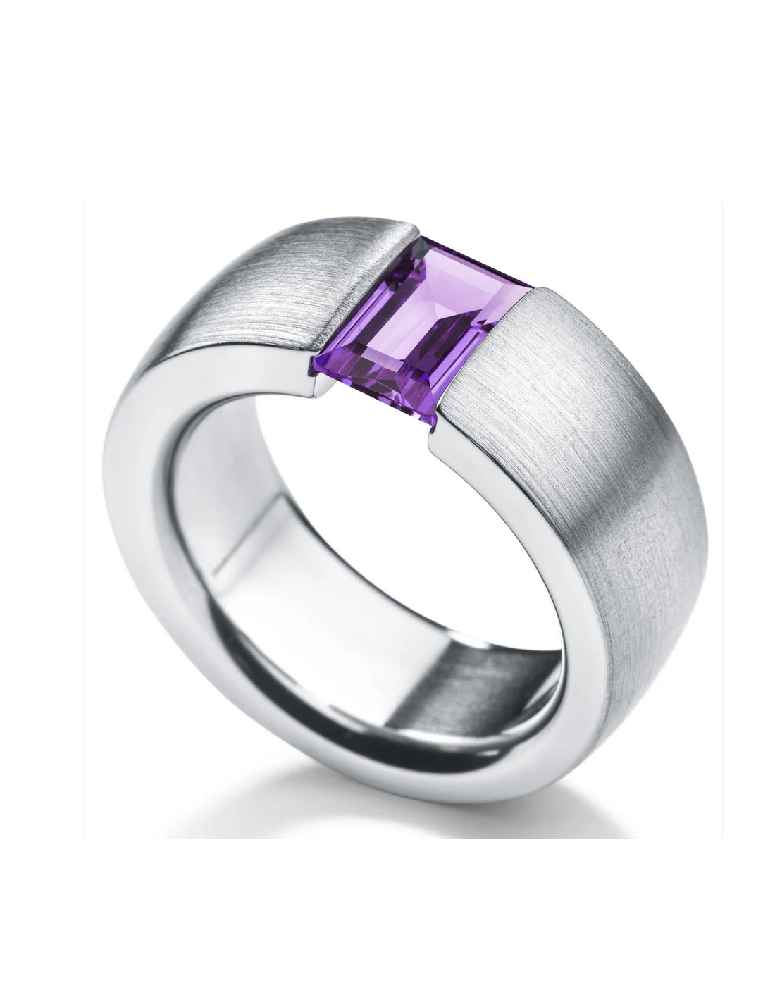 The sides and inside of the ring are polished, the outside is matte, and the edges are rounded, giving the ring a soft and supple feel. The gemstone is held in place by tension within the ring, giving the impression that the stone is floating. Humphrey uses nickel-free stainless steel. Your Humphrey ring can always be your companion.
