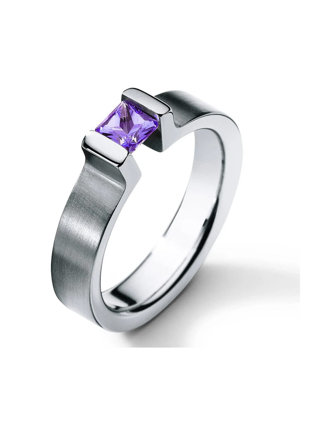 Steel ring Victory 4.5m.m. with princess cut amathys stone.