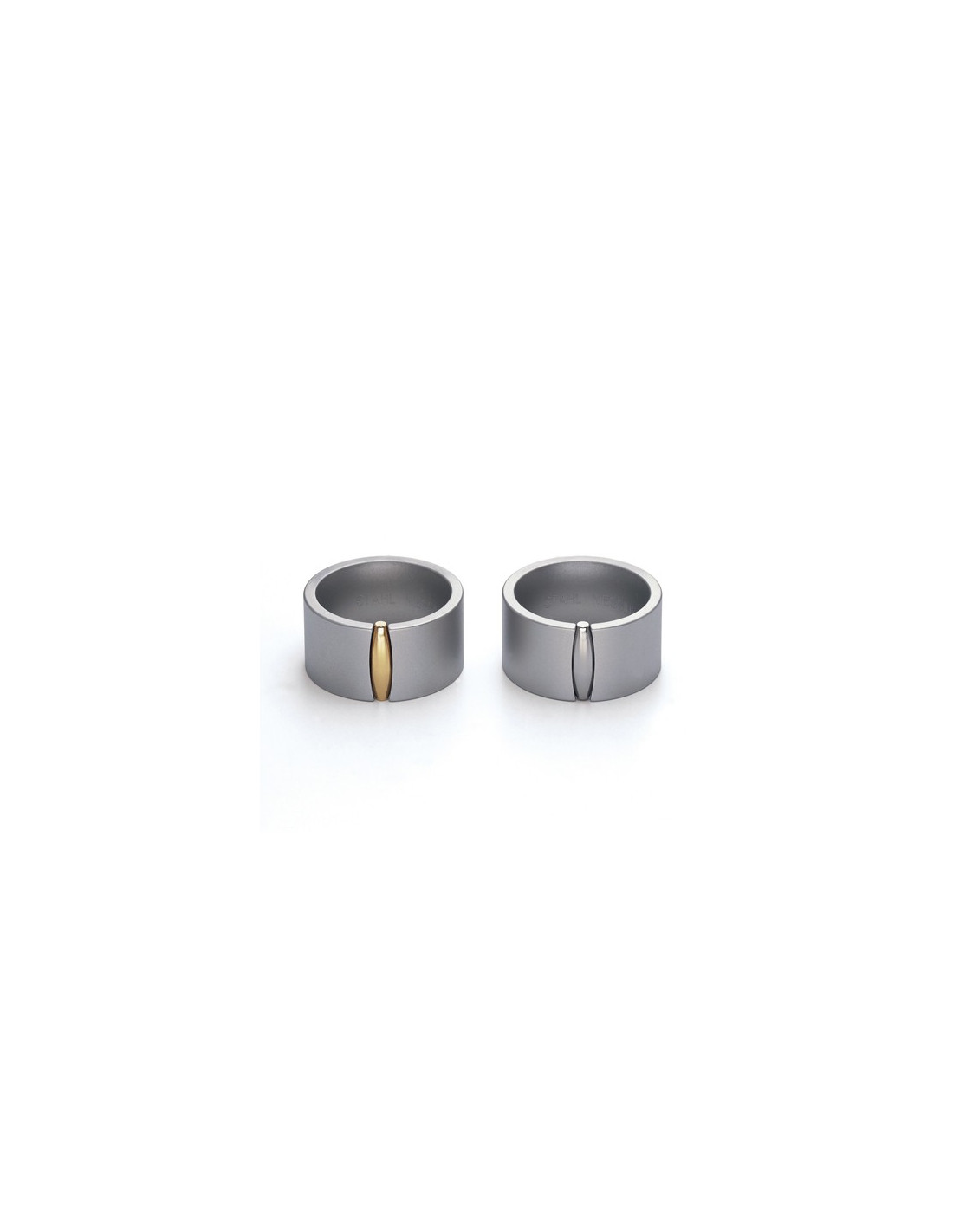 Niessing Zeppelin gray steel piece 18 karat yellow gold in the center.