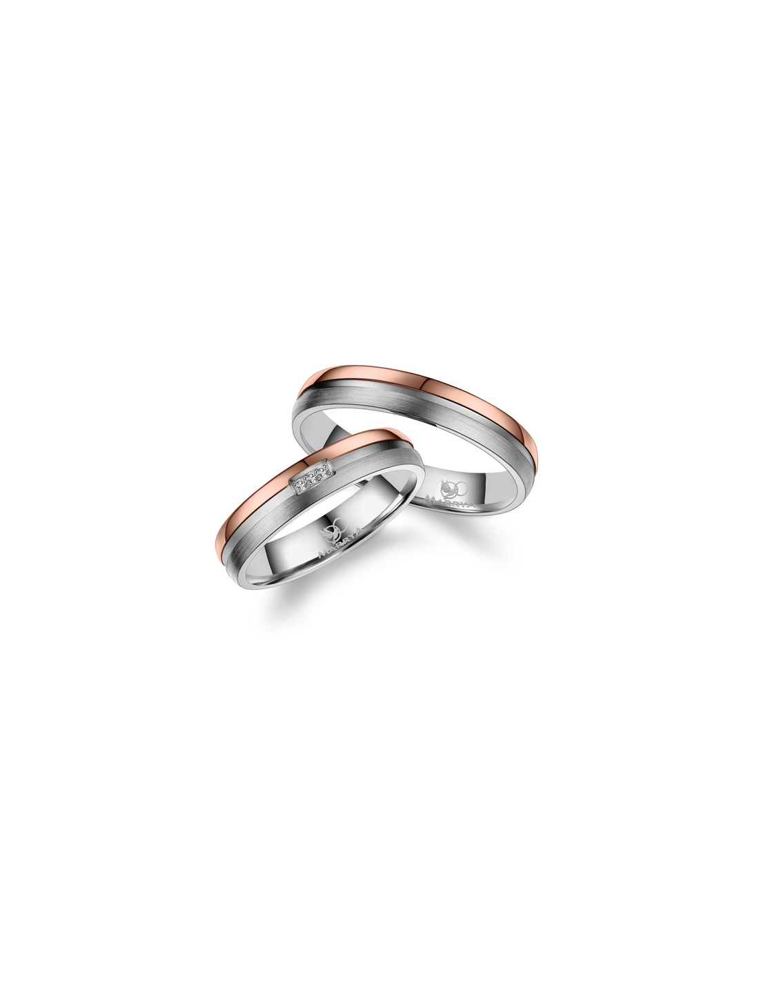 The women's ring features a detail of 3 zirconia stones (can be made without stones).