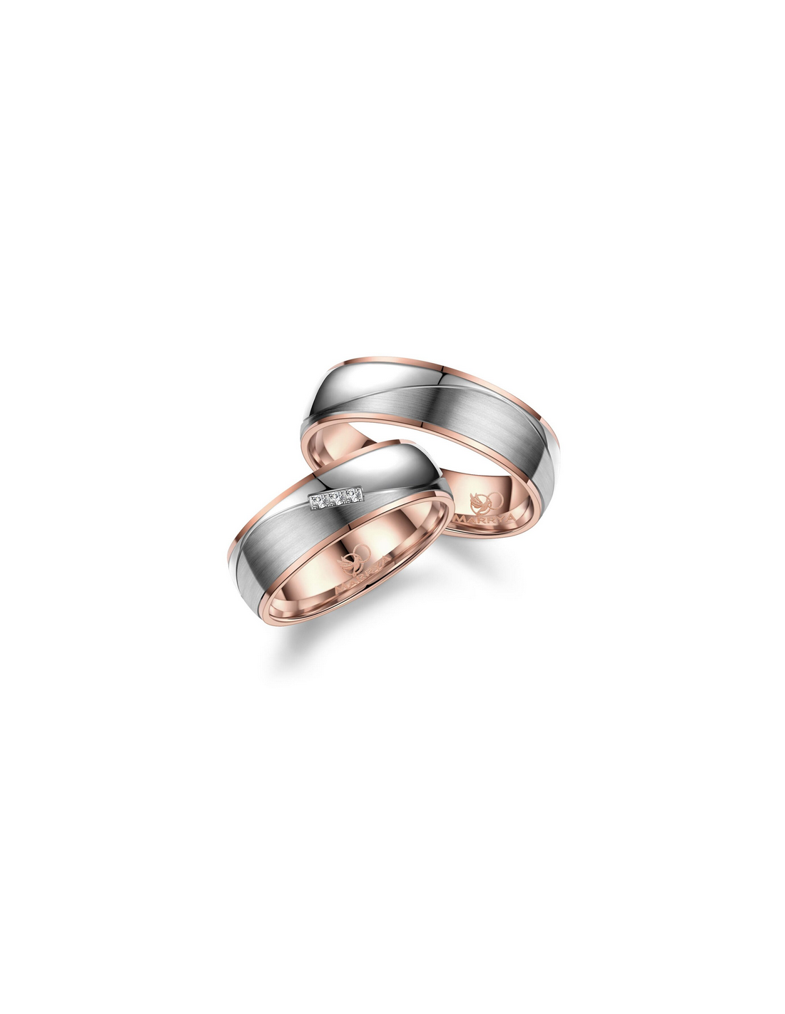 The women's ring features a detail of 3 zirconia stones (can be made without stones).