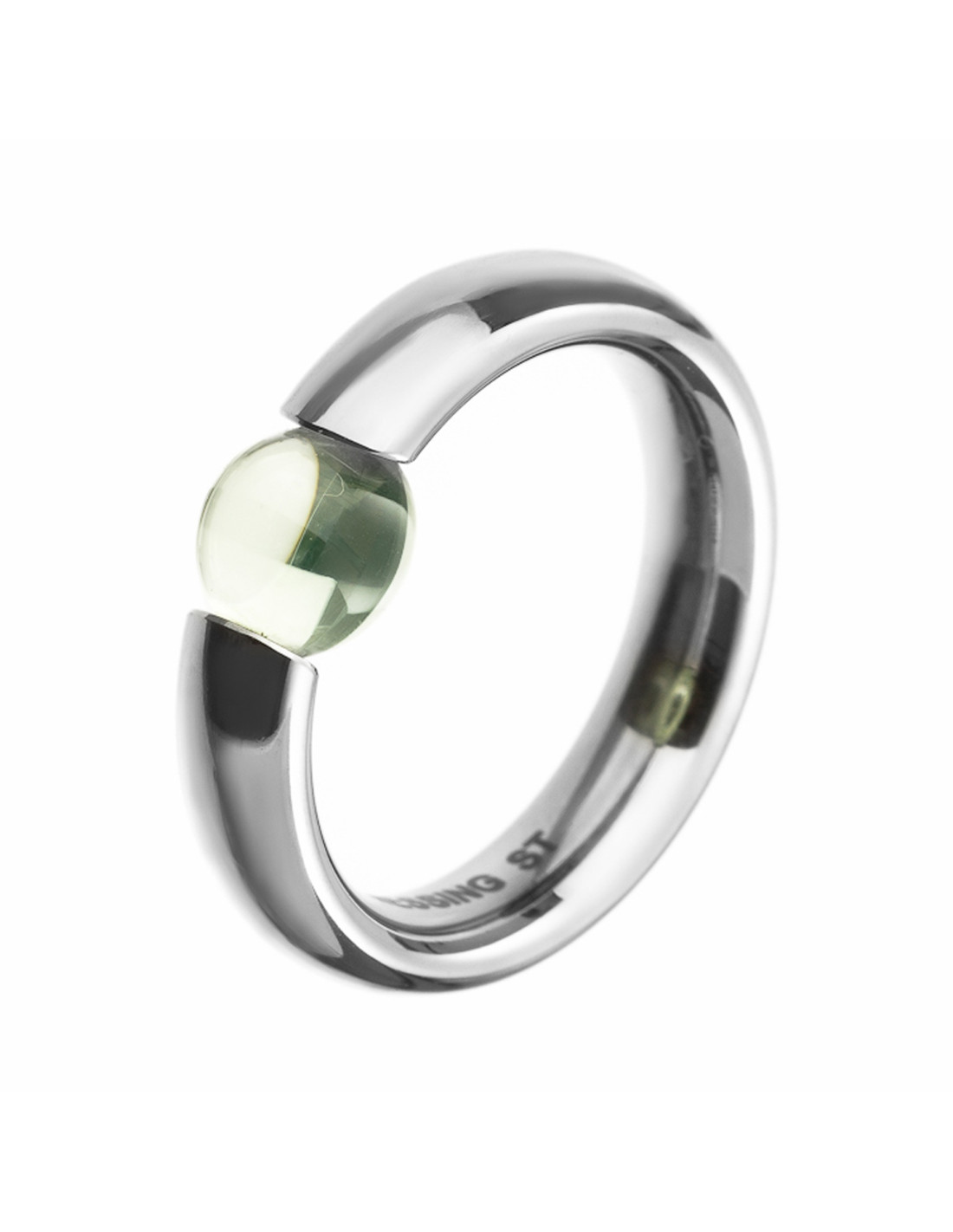 Niessing Tint en acero gris con piedra cabuchón crisolito con posibilidad de acabado matizado fino o pulido