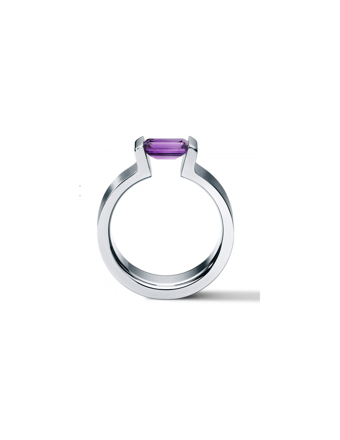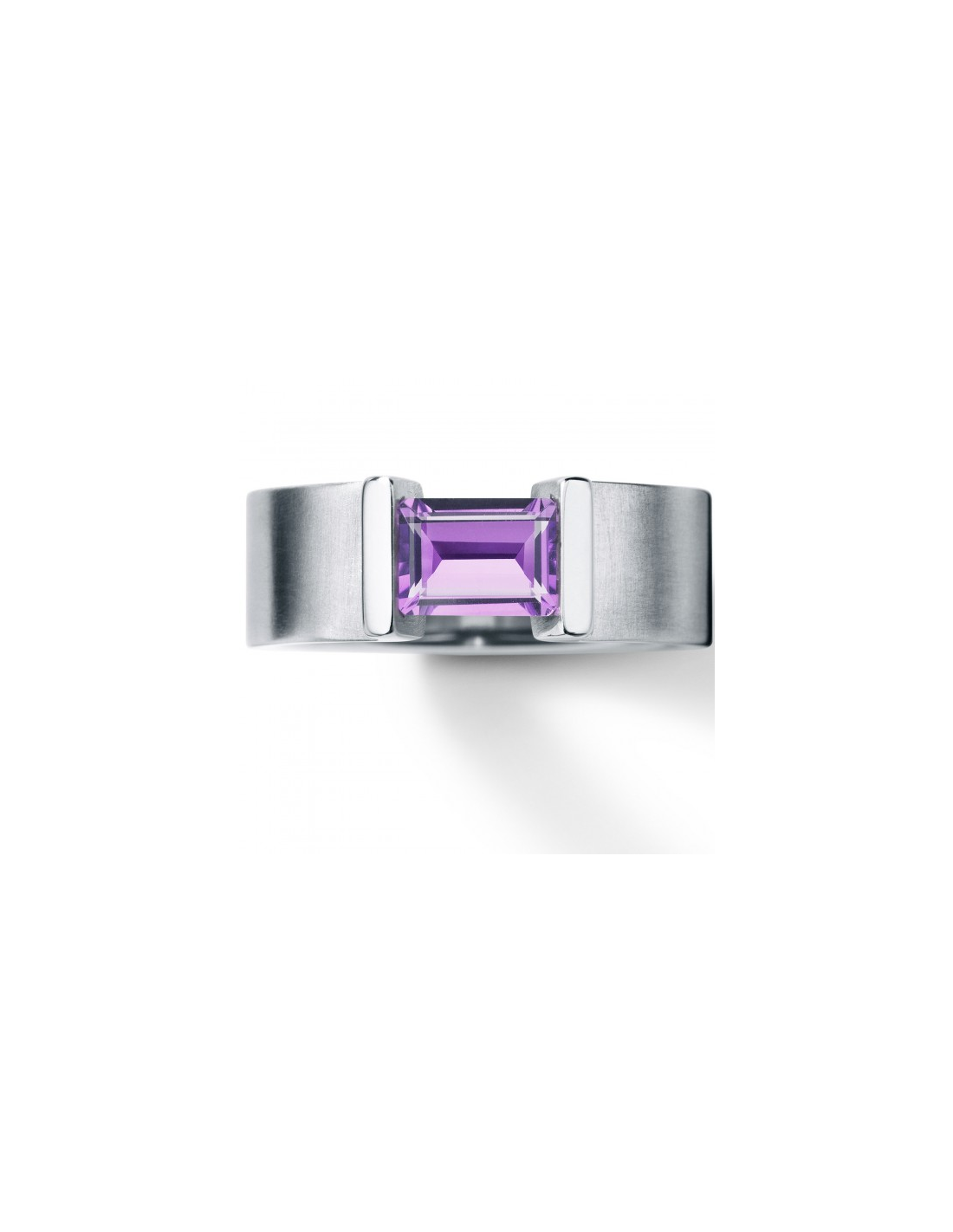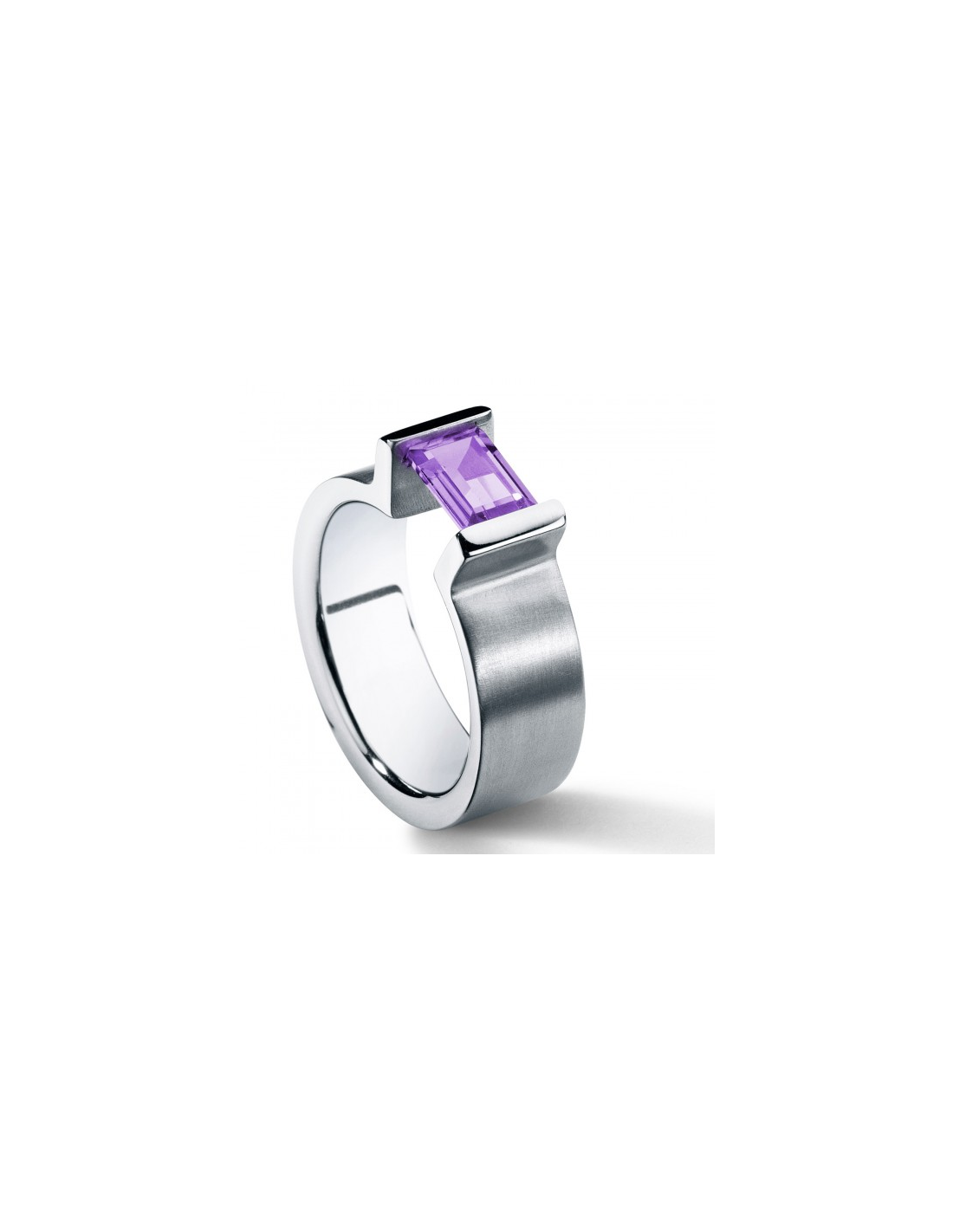 Anillo Victory 7 m.m ancho de acero con piedra semipreciosa talla baguette de 7x5 m.m