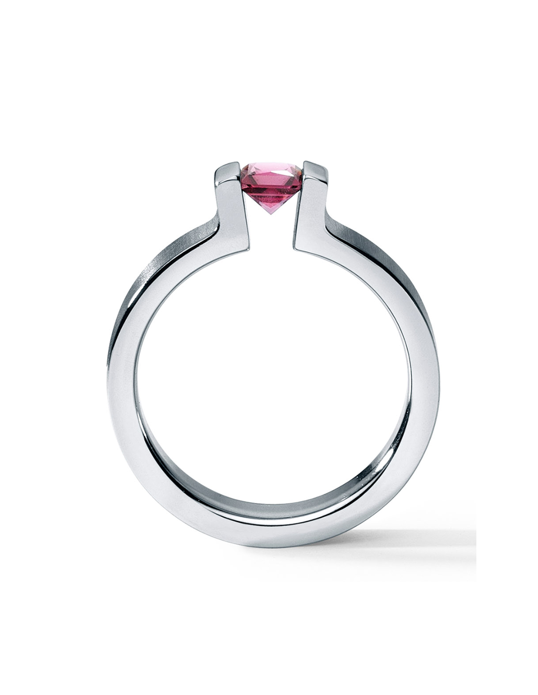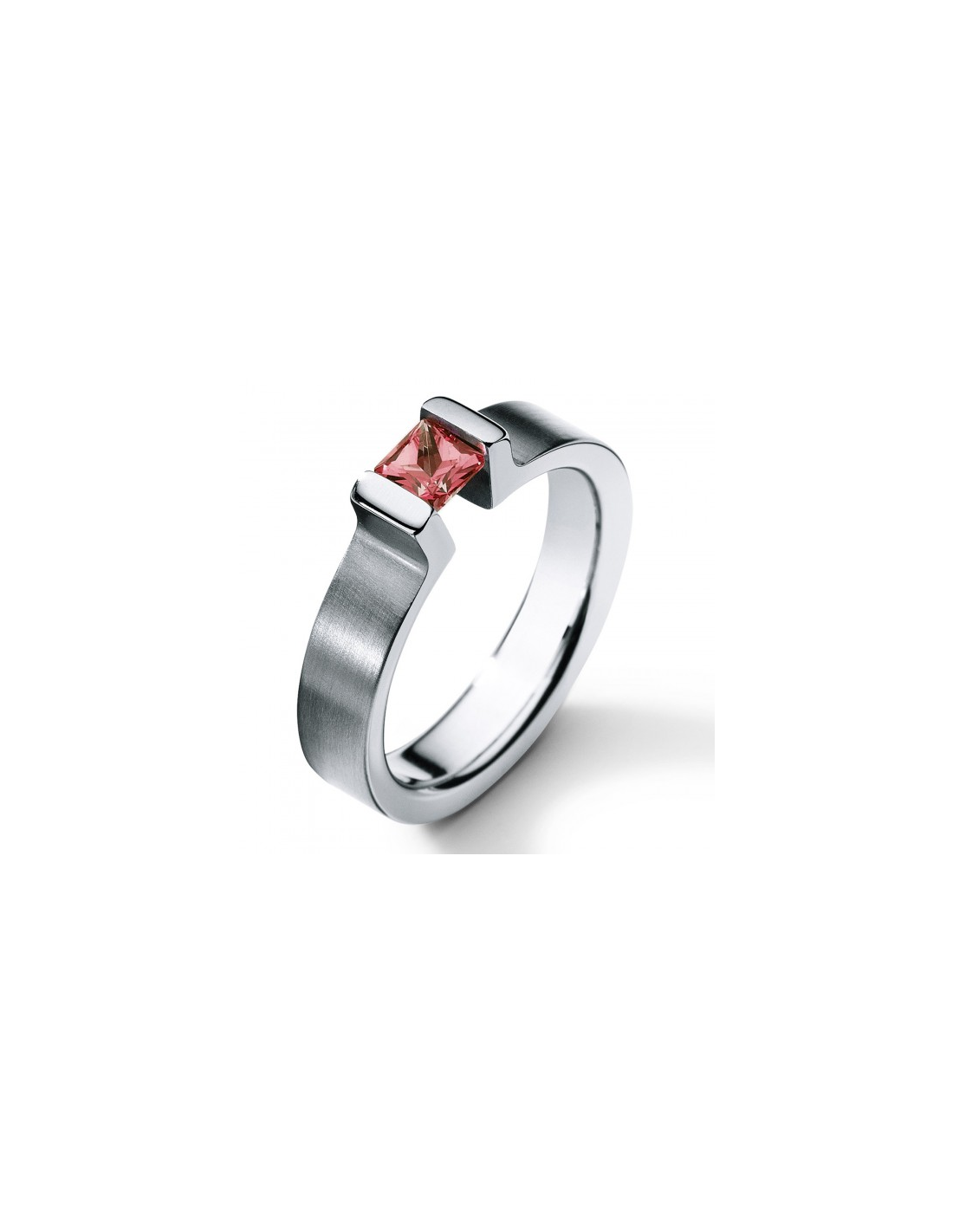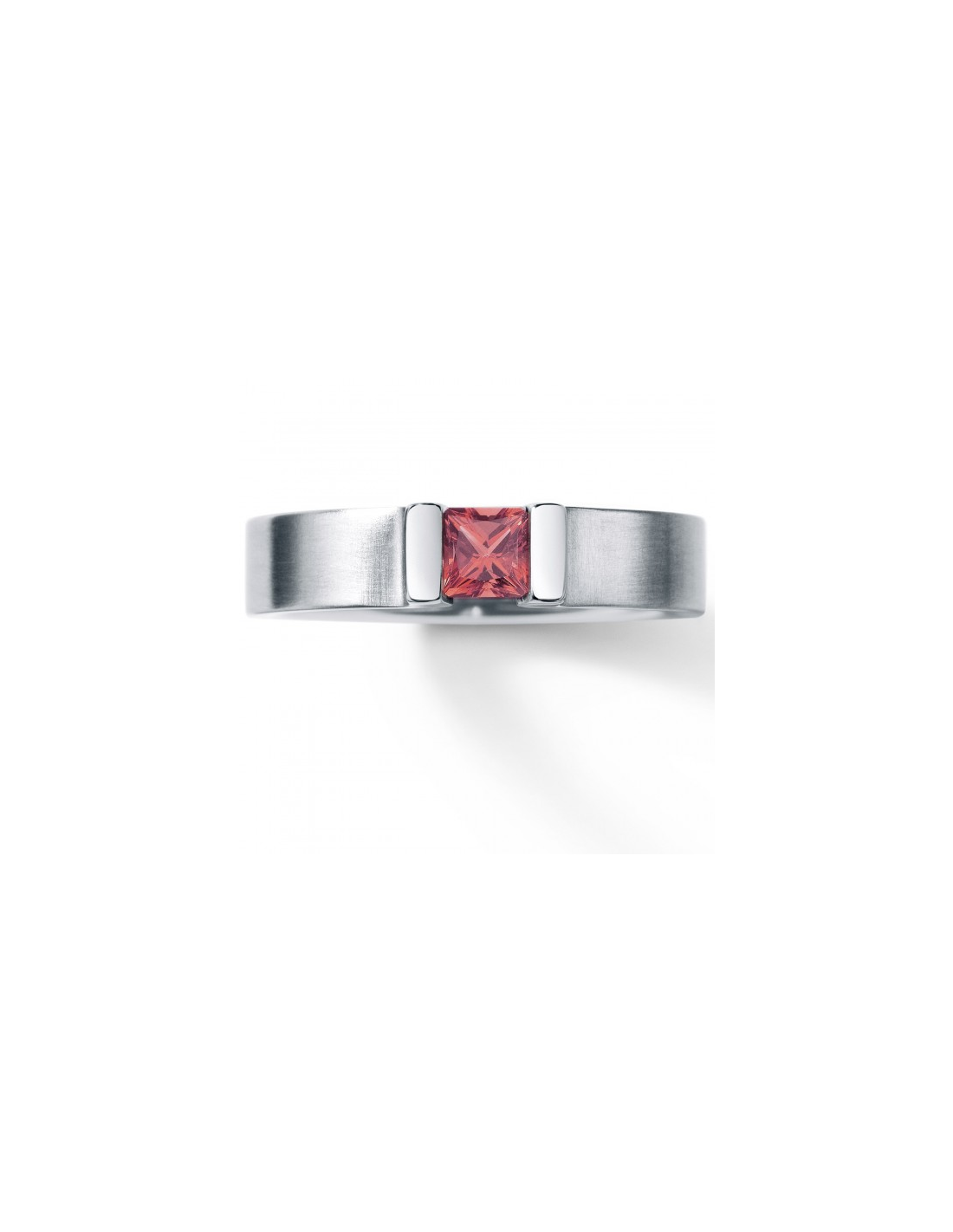 Anillo de acero Victory de 4.5 m.m. con piedra corte princesa Rodolita.