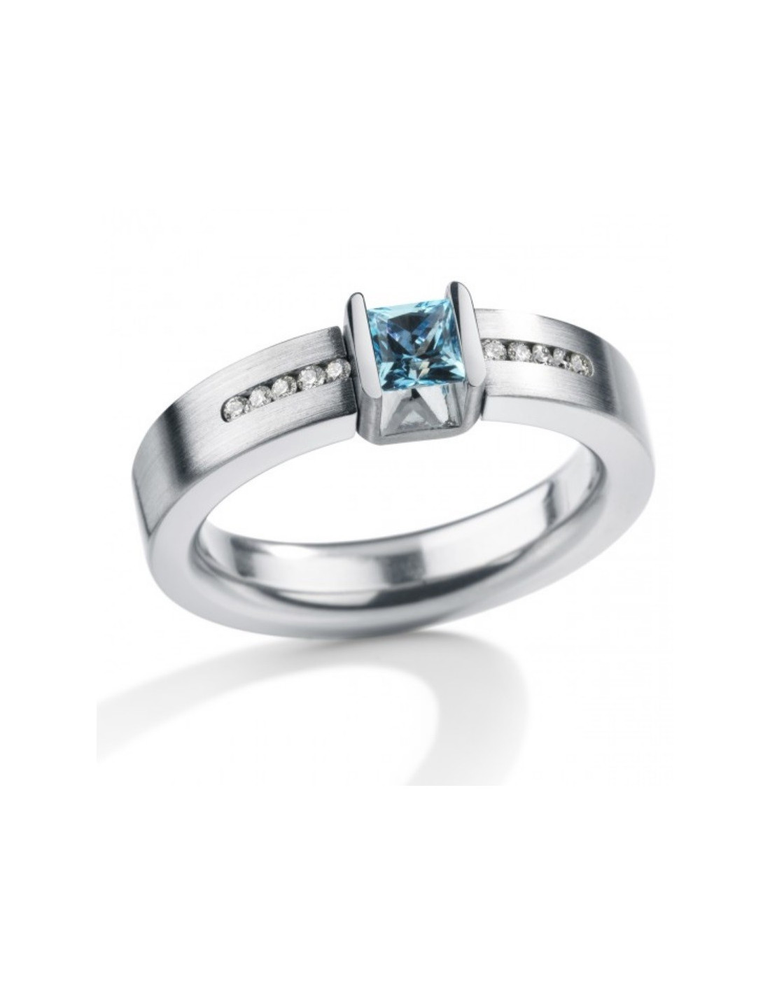Los lados y las superficies interiores del anillo están pulidos, la superficie exterior es mate y los bordes son redondeados, lo que le da al anillo una sensación suave y flexible. La gema se mantiene en su lugar mediante la tensión dentro del anillo, dándole la apariencia de flotar. Los diamantes se mueven ligeramente en su engaste, creando un brillo particularmente espectacular. Humphrey utiliza acero inoxidable sin níquel. Tu anillo Humphrey siempre será tu compañero.