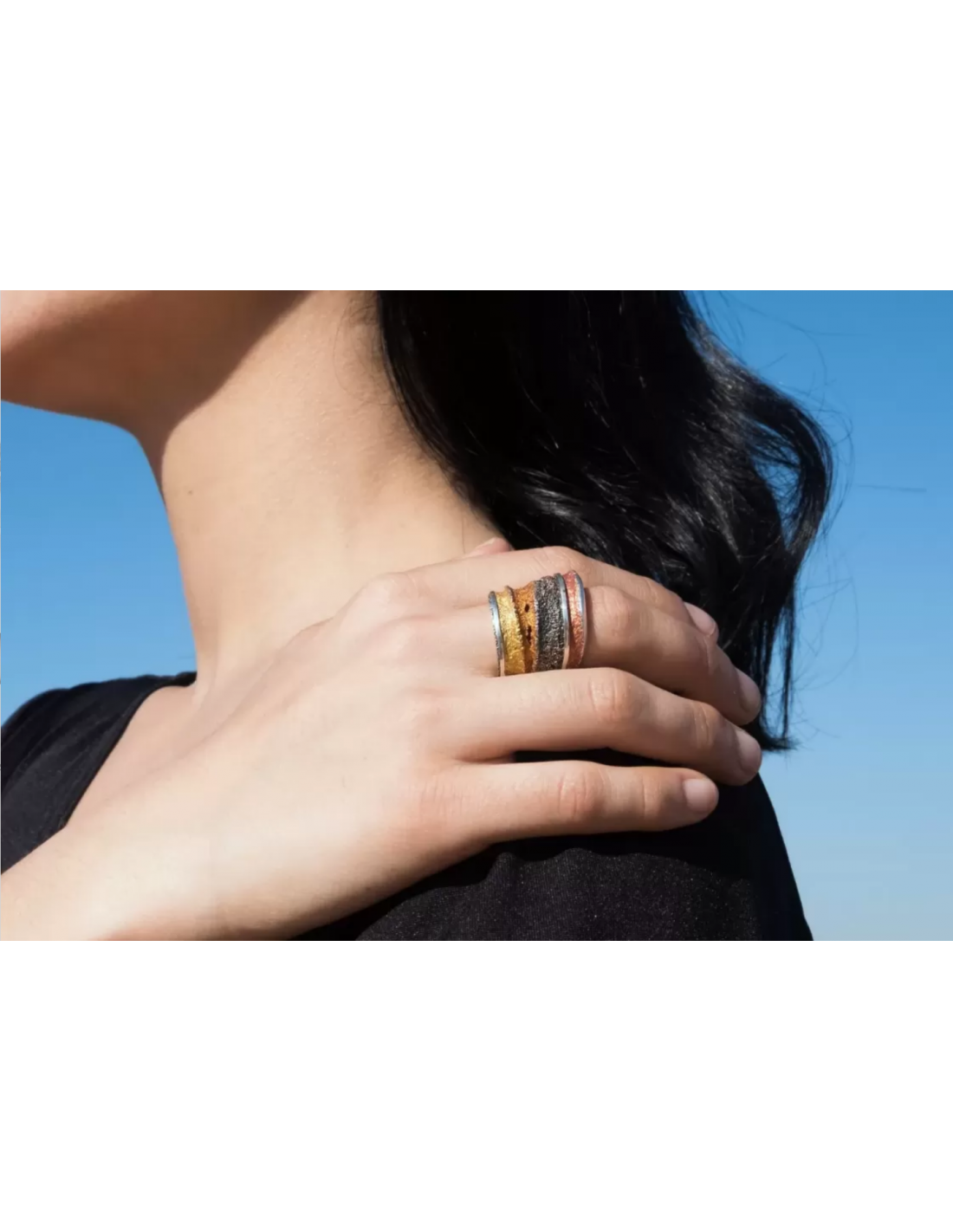 Anillo de la colección Sinera realizado en plata de lei 925 en colores de esmalte Ocre.