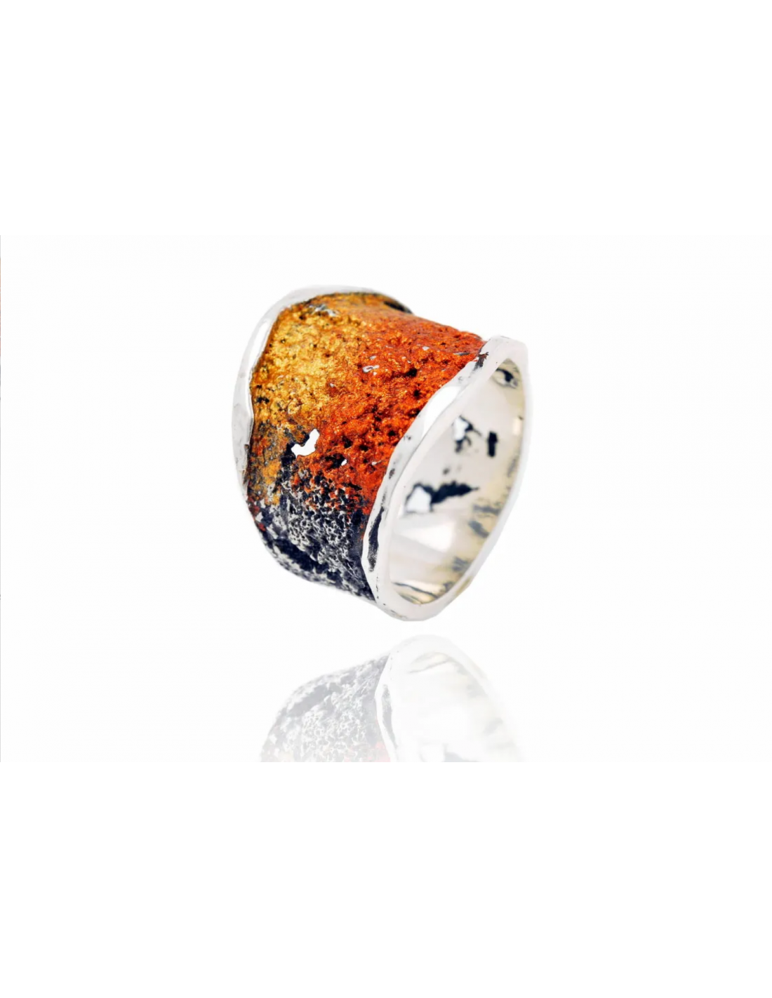 Anillo de la colección Intenzza realizado en plata de lei 925 en colores de esmalte Ocre.