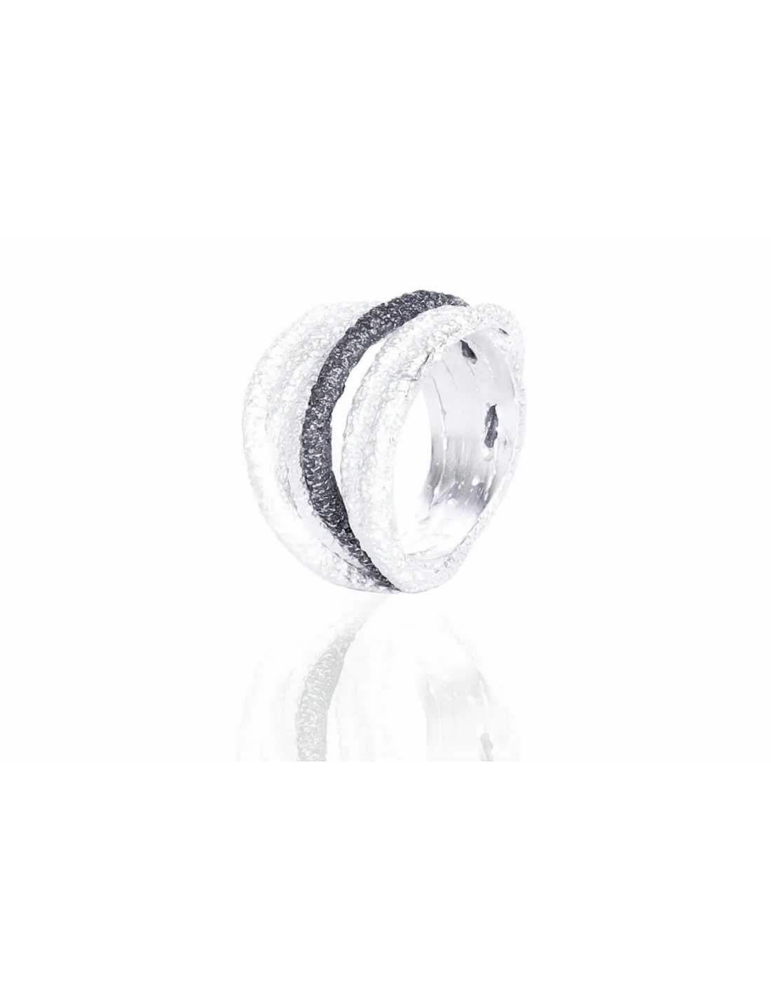 Anillo realizado en plata de ley 925 con acabados mate y hilo de plata oxidado dando un toque muy original a un diseño totalmente artesanal