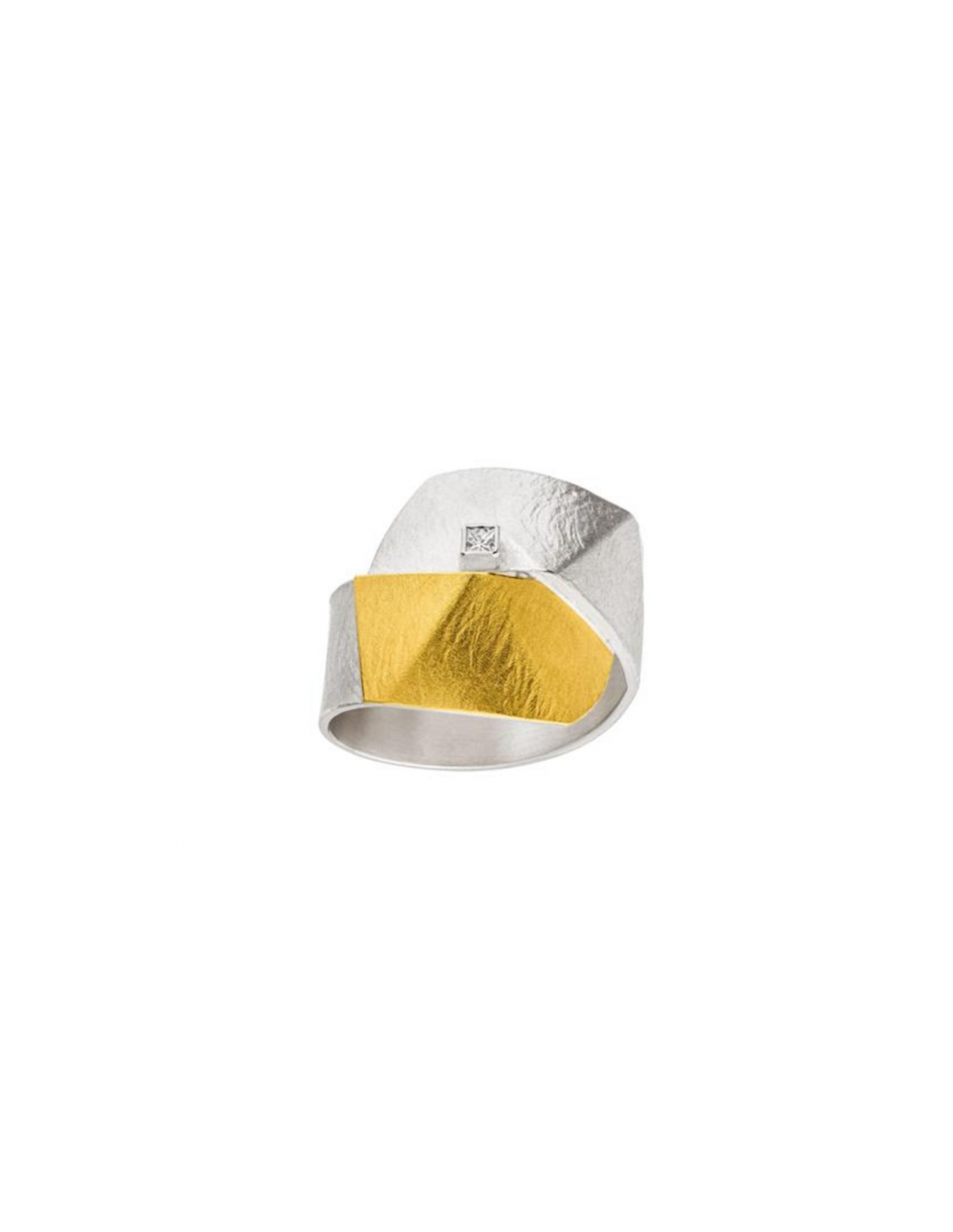 Anillo plata, oro 22 quilates y diamante talla princesa 0,05 quilates