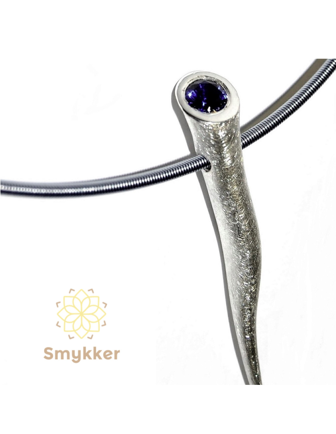Colgante plata 925 acabado mate rayado con piedra corindón spinella azul talla brillante de 8 m.m.