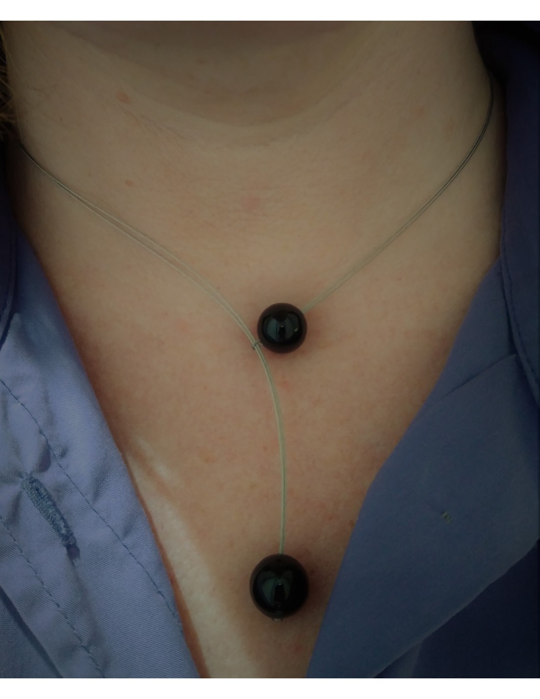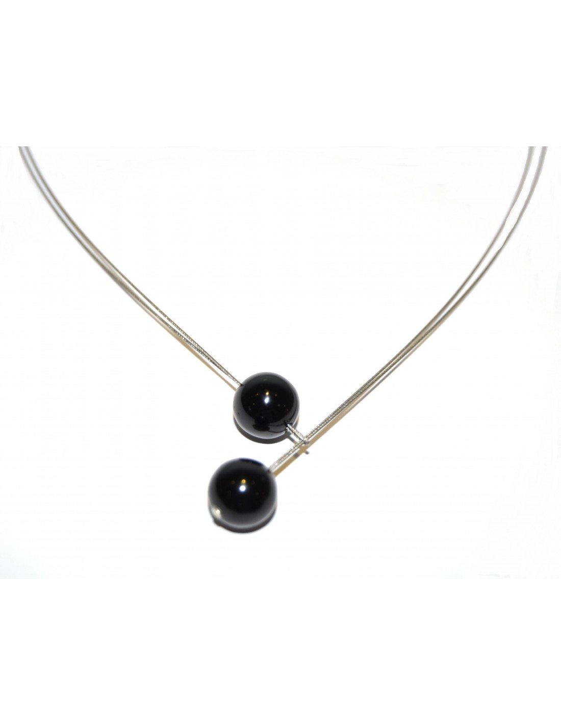 Colgante con cable de acero y bolas de piedra natural onix, producto realizado en nuestro taller de forma artesanal.