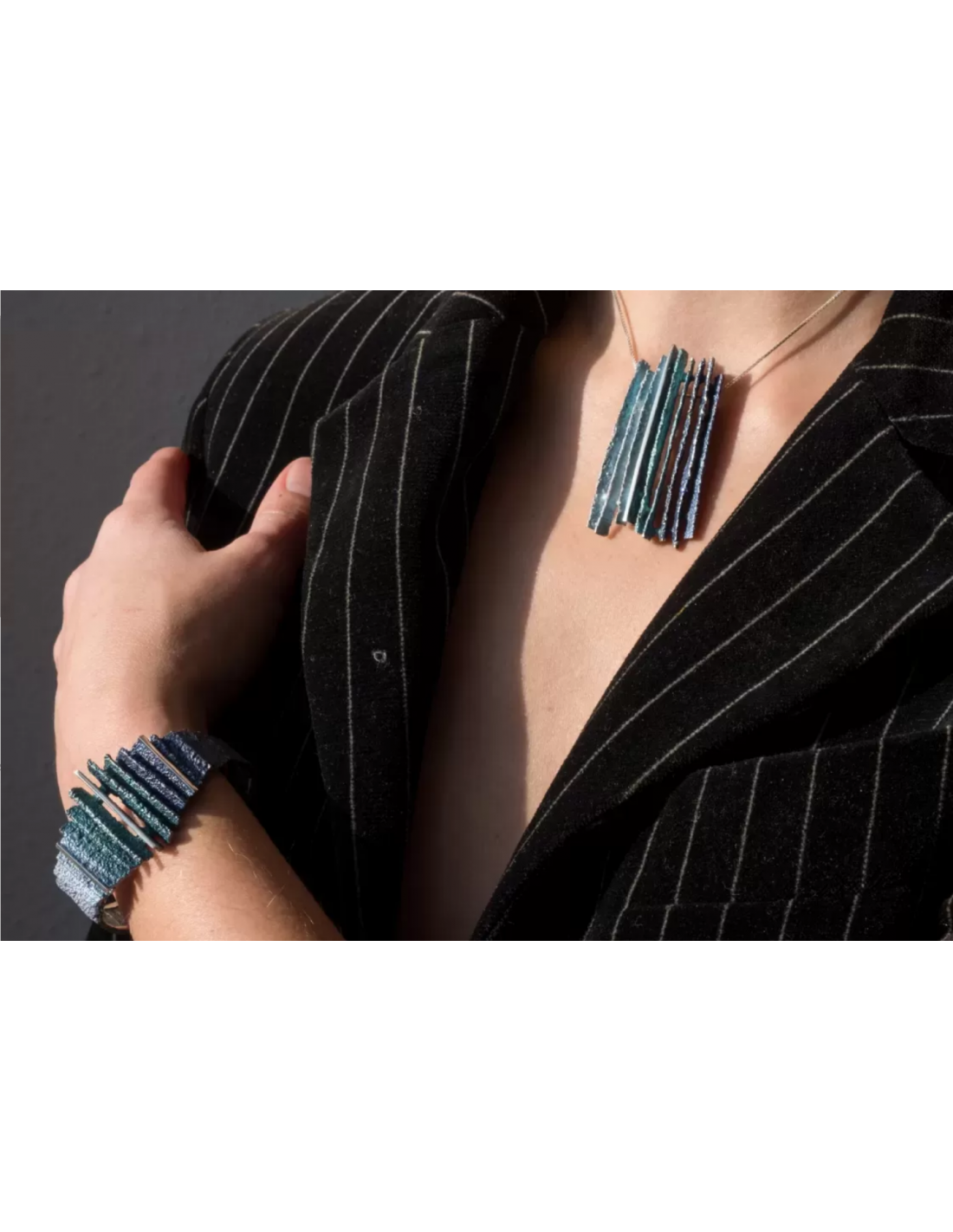 Colgante de la colección Junc Pigments realizado en plata de lei 925 en colores de esmalte azul Formentera.