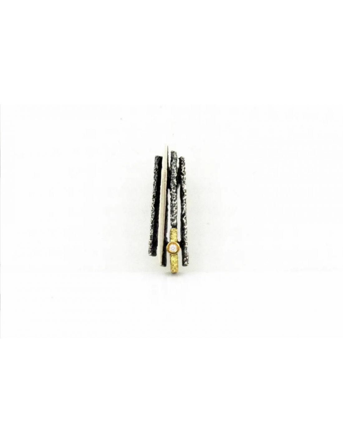 Pendientes Junc Plata y Oro Pequeños con diamante TW-VS1 (G) 0,02 ct.