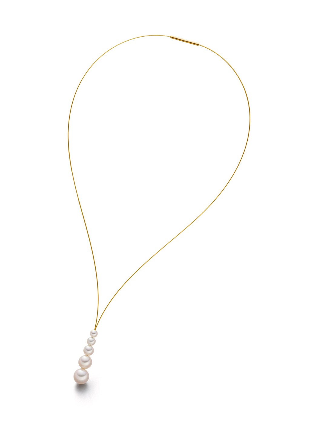 Collar, cable de acero inoxidable chapado en oro, 5 perlas cultivadas de agua dulce.