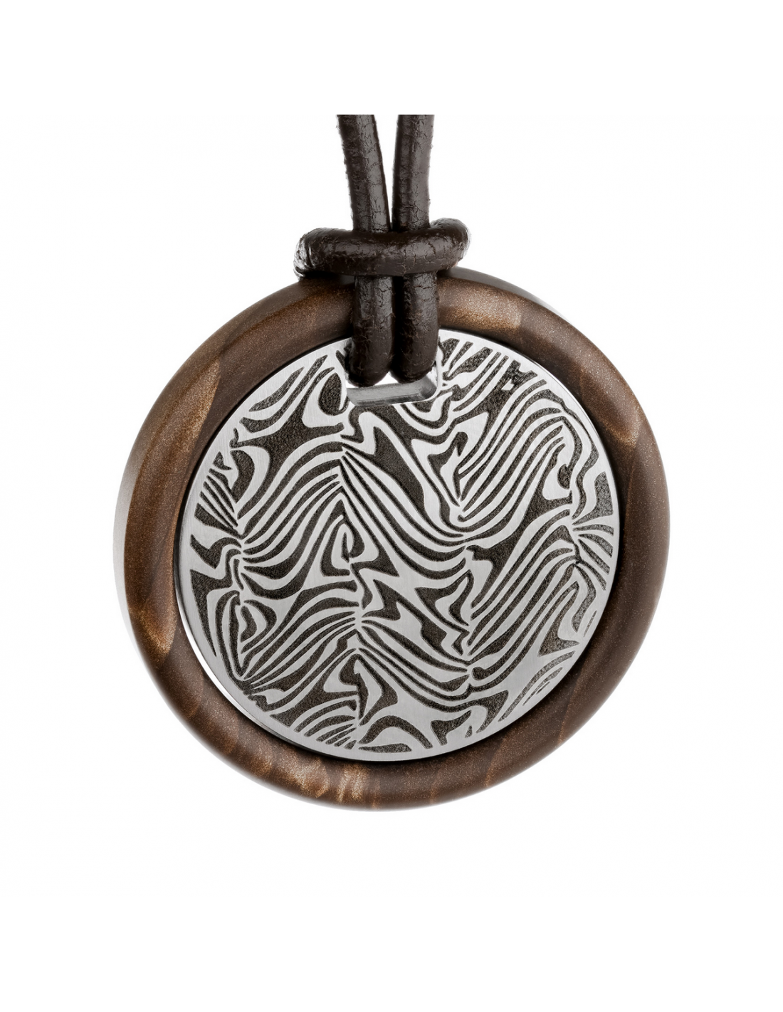Este expresivo collar para hombre impresiona por sus diversas composiciones: un colgante de acero inoxidable con acabado negro grabado, combinado con madera de seda y un cordón de cuero. El collar forma parte de la colección Fine Steel Works de ERNSTES DESIGN. Fine Steel Works es sinónimo de accesorios masculinos expresivos con diversas composiciones. La joyería para hombres con personalidades expresivas incluye collares, pulseras y anillos de acero inoxidable, a veces combinados con madera de seda. Los elementos de acero inoxidable de alta calidad se combinan con madera, madera de seda o cuero y se refinan con grabados láser individuales desarrollados por nuestros diseñadores.