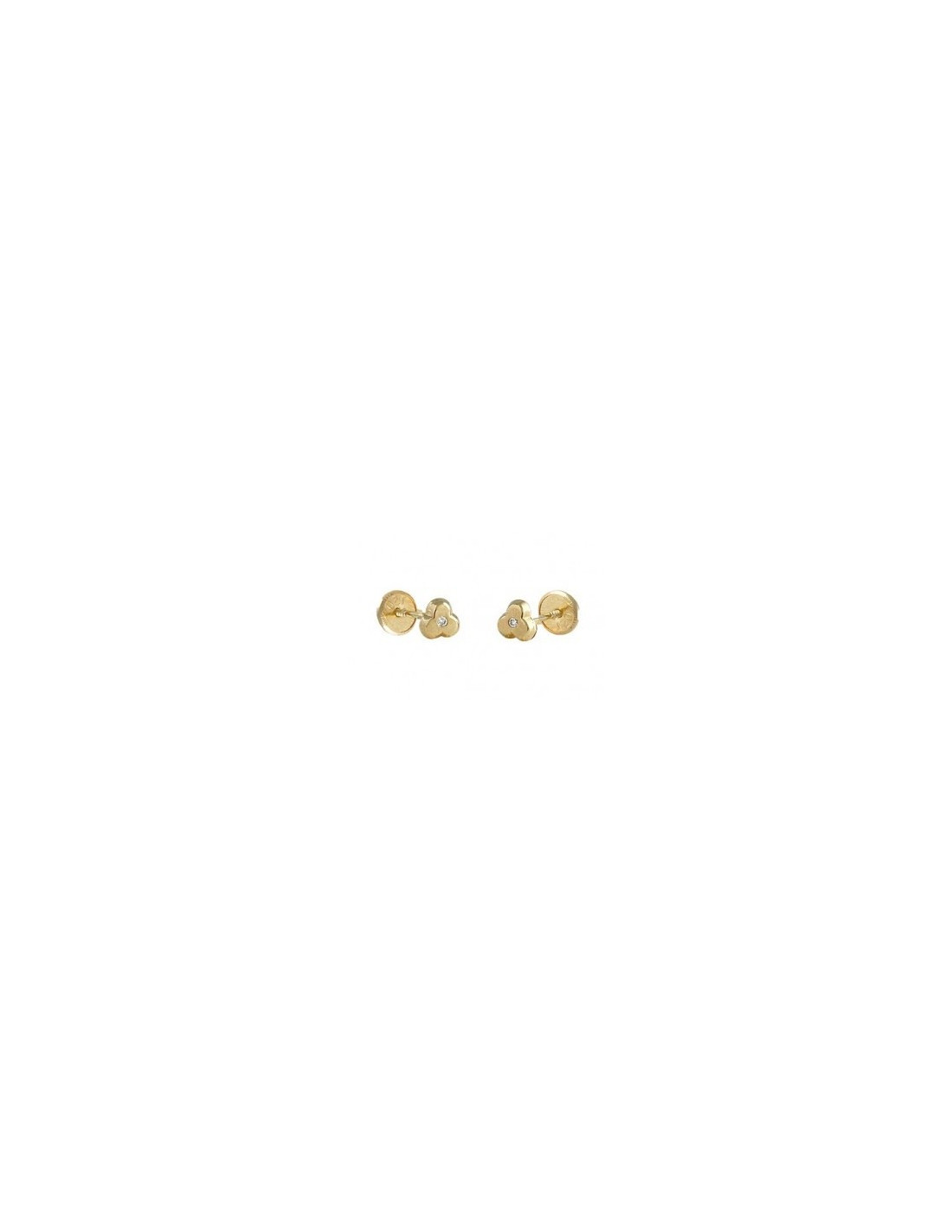 Pendientes Bebé en Oro Amarillo 18 Kltes. 750mlm. con 2 diamantes (0,02 kts.) trebol 4mm. 0,02 Kltes. tiene cierre de rosca para garantizar la comodidad.