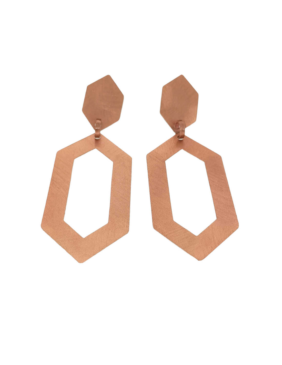 Pendientes Exagono largos de plata 925 con baño de oro rosa 18 kilates.