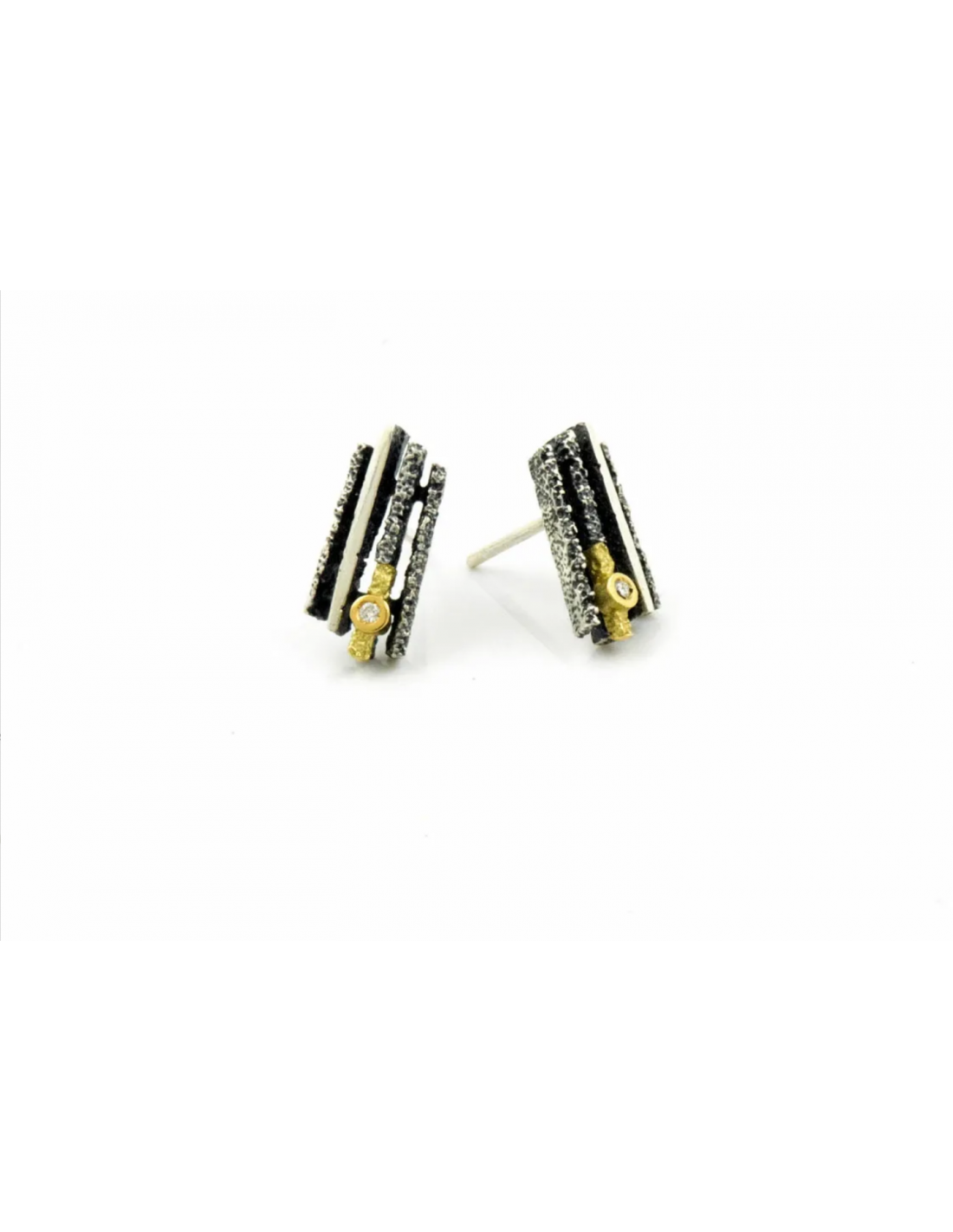 Pendientes Junc Plata y Oro Pequeños con diamante TW-VS1 (G) 0,02 ct.