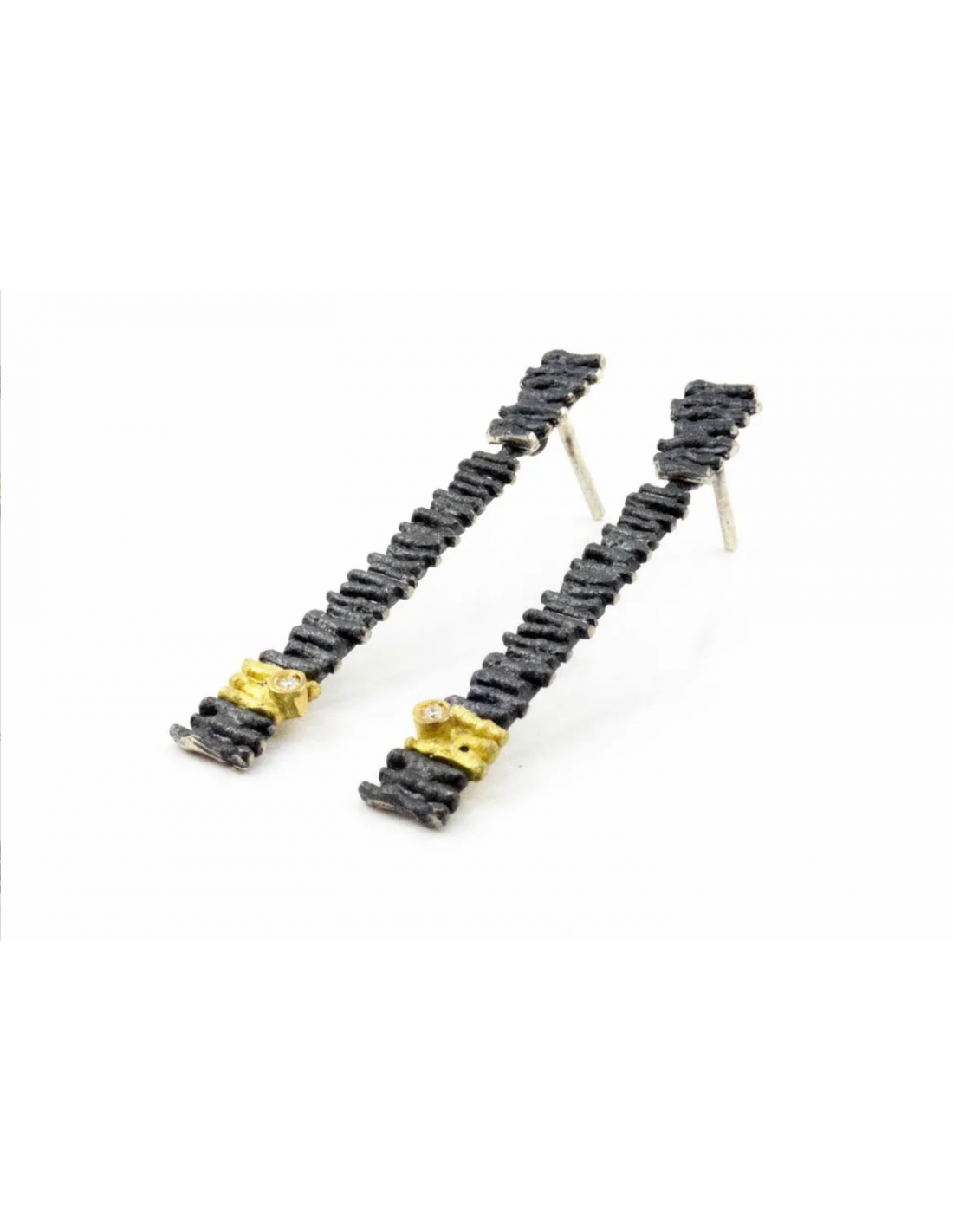 Pendientes Junc , realizados en plata de lei 925 y oro amarillo 18 kilates con detalle de diamantes TW-VS1 (G) 0,02 quilates
